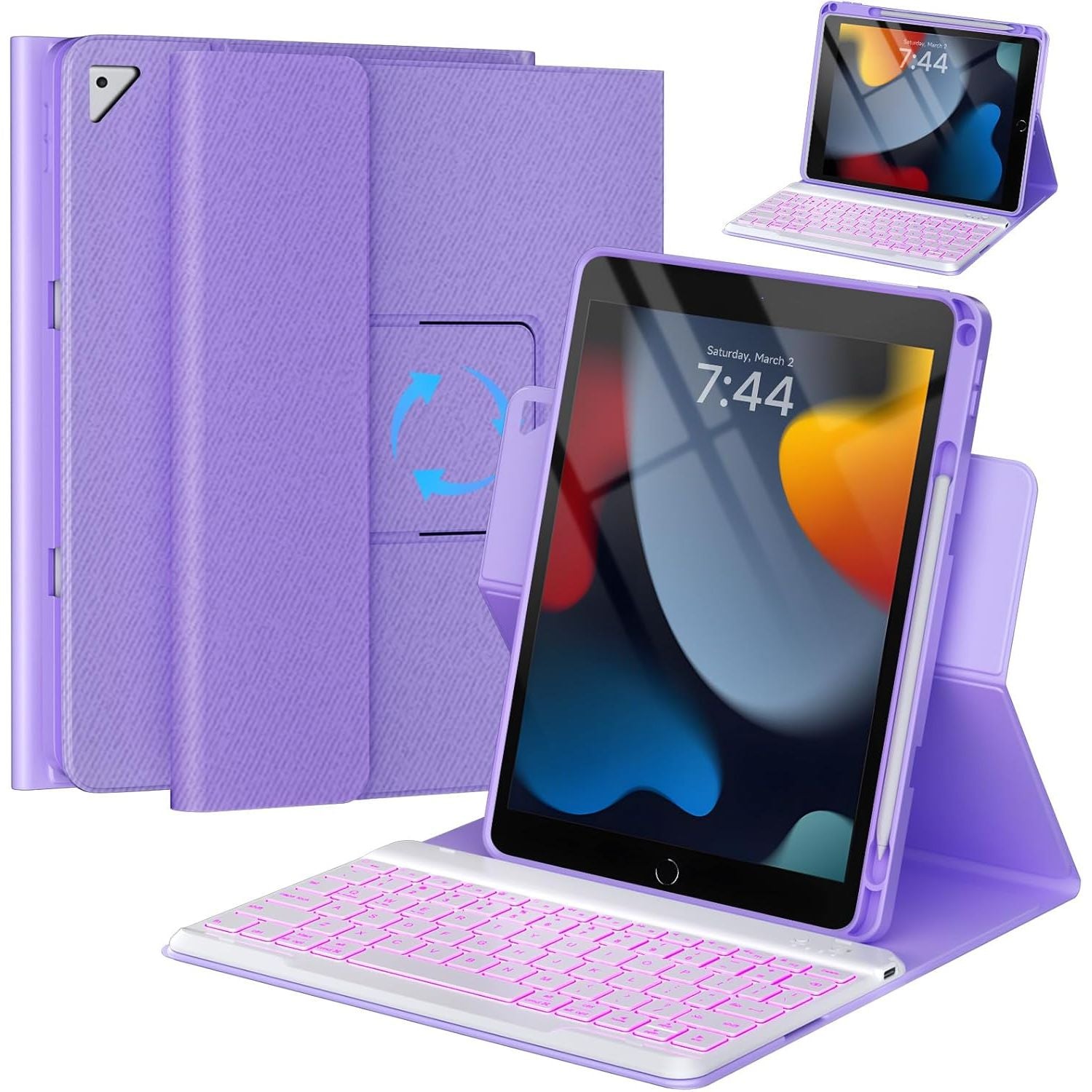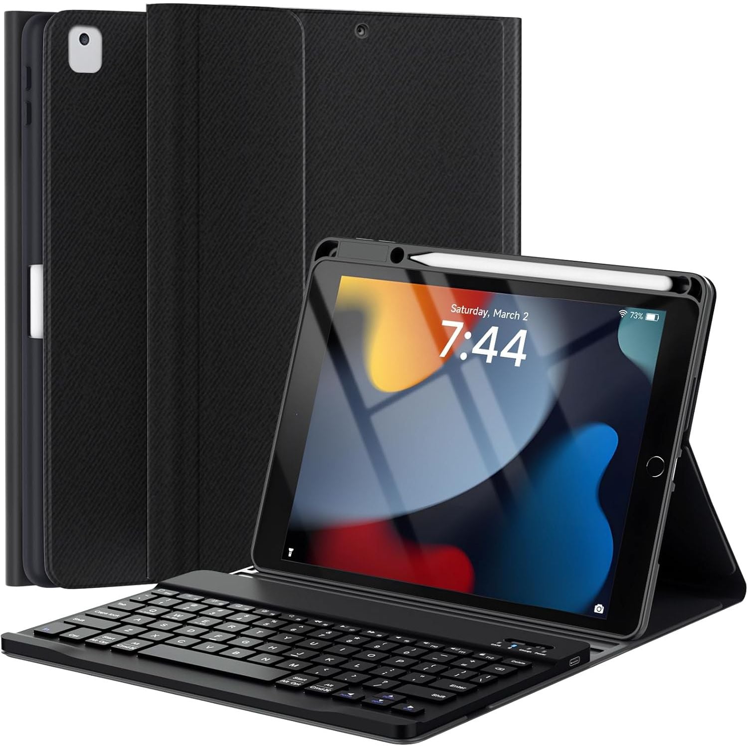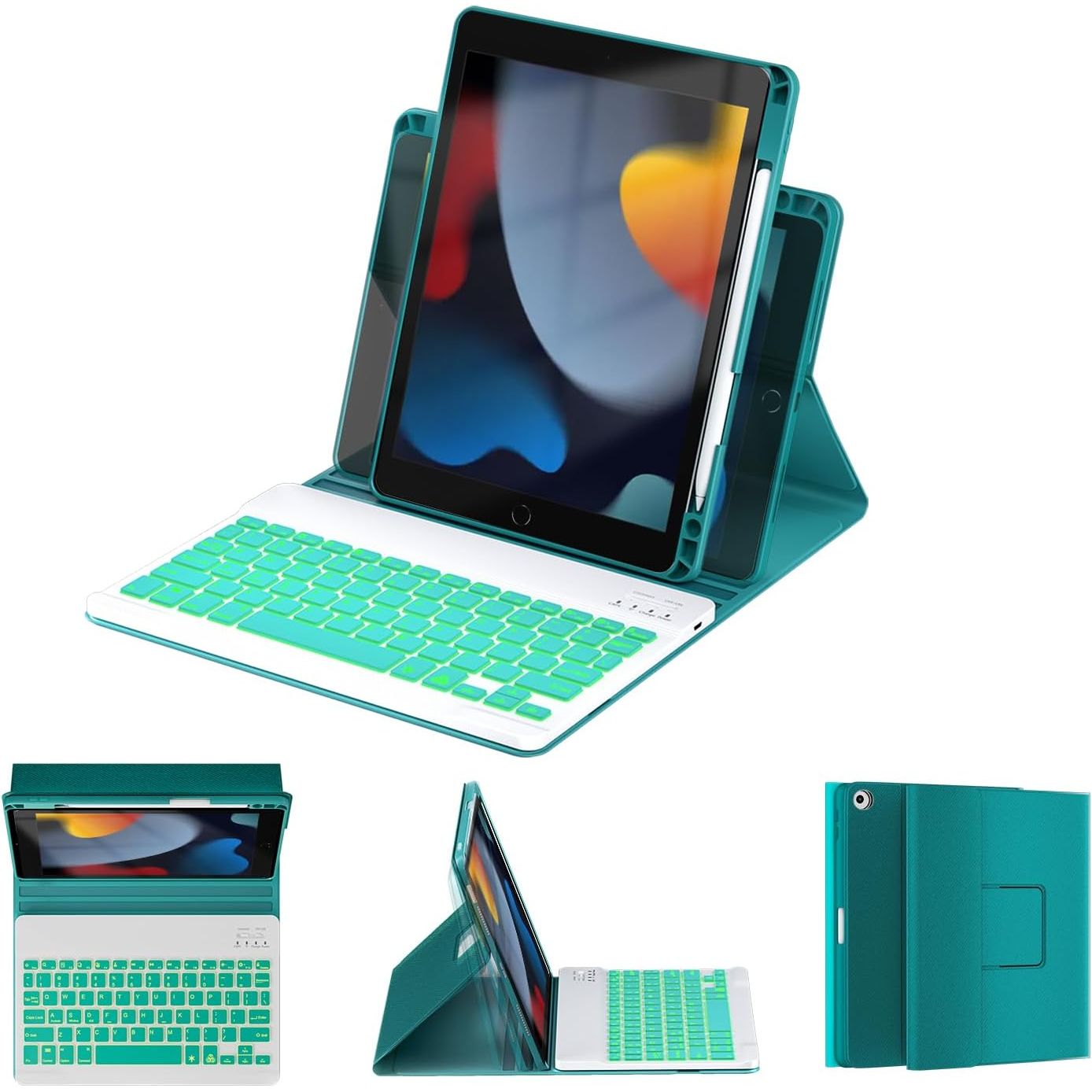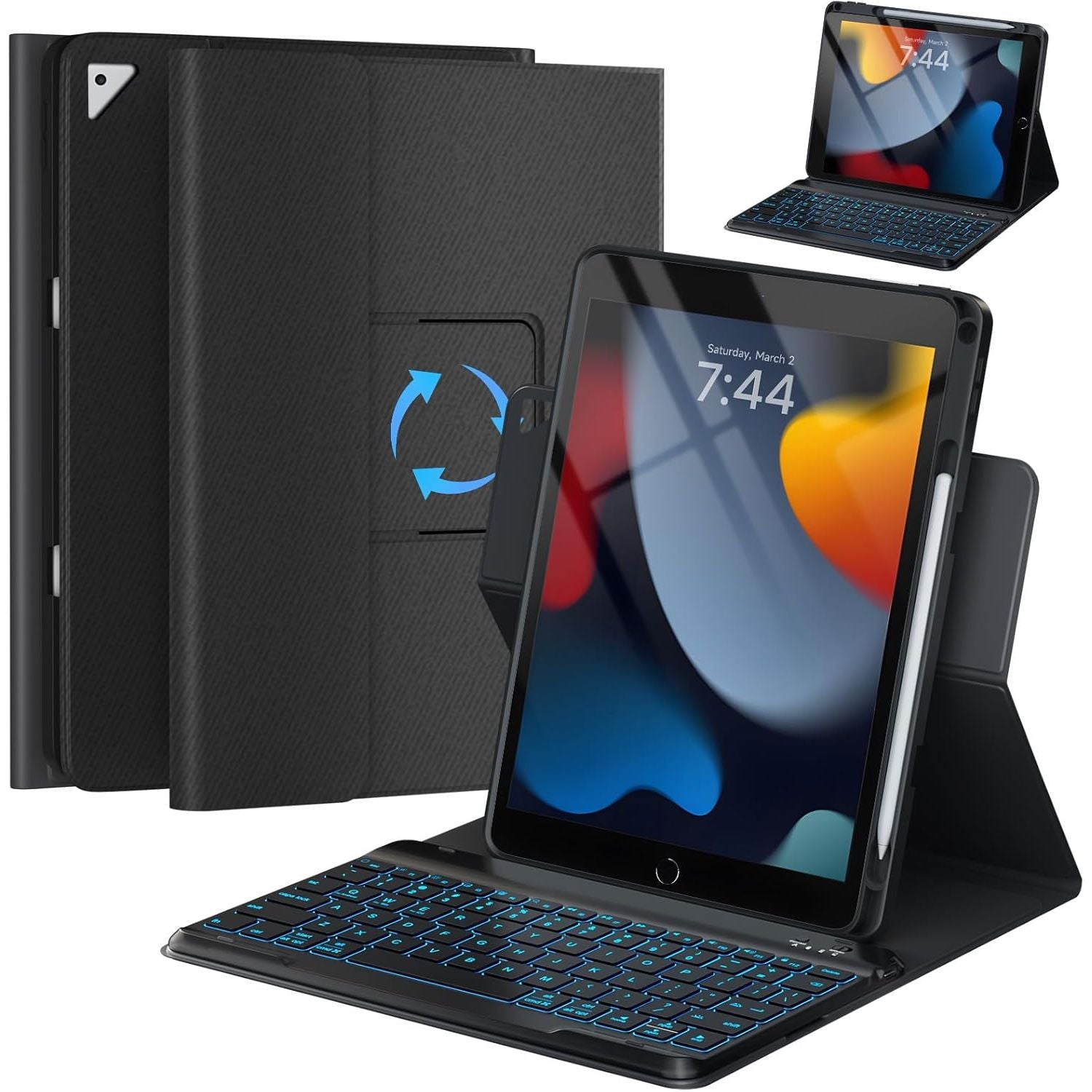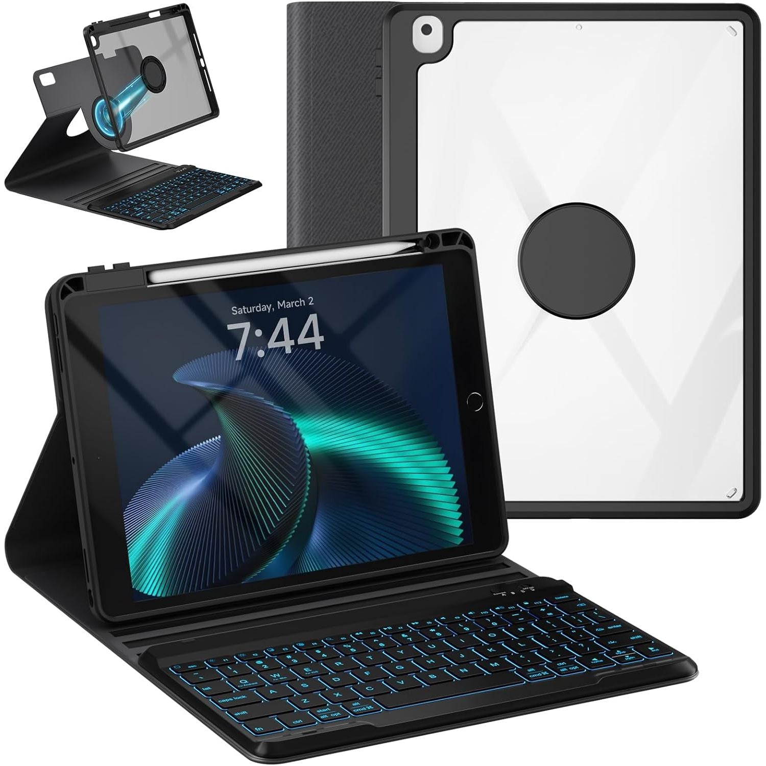 - OYEEICE for iPad 9th Generation Case with Keyboard 10.2'' - 7 Color Backlit Wireless Keyboard Cover with Pencil Holder for iPad 9th/8th/7th Gen 10.2 inch, iPad Air 3rd Gen & iPad Pro 10.5" - Black