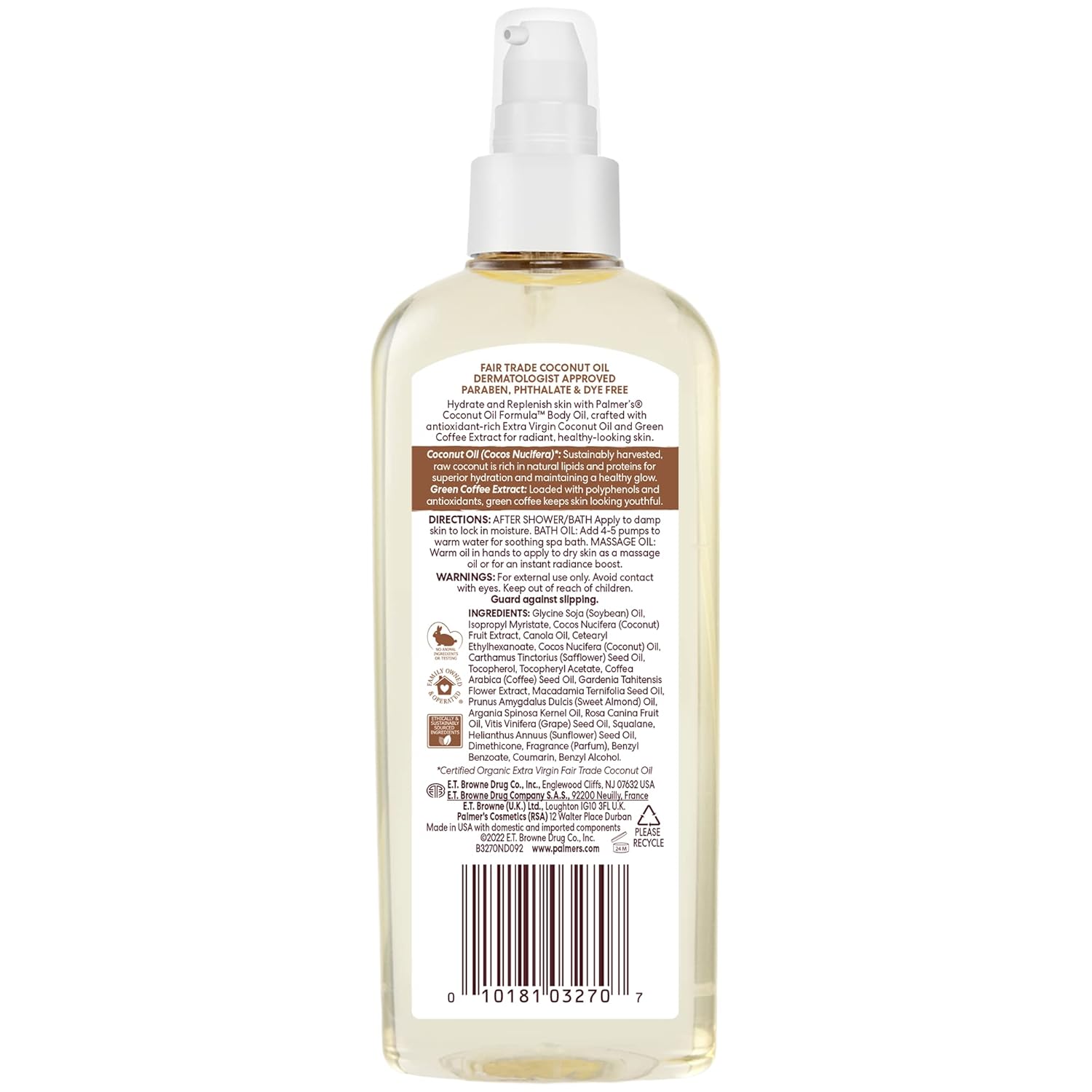 - Palmer's Coconut Oil Formula Body Oil, Body Moisturizer with Green Coffee Extract, Bath Oil for Dry Skin, 5.1 Ounces (Spray Cap)