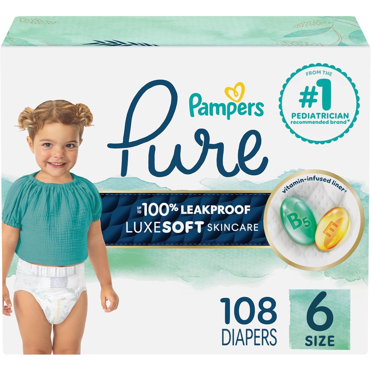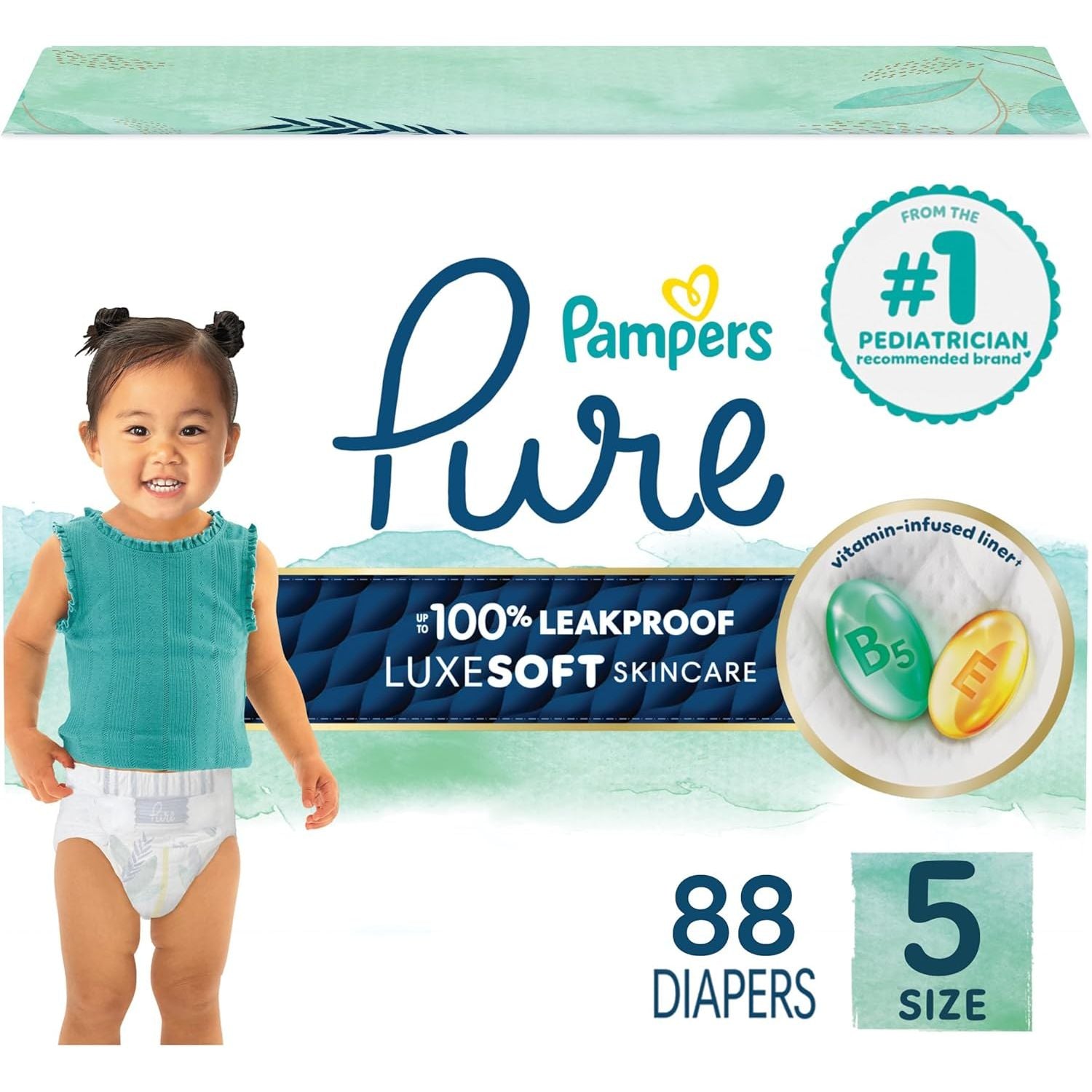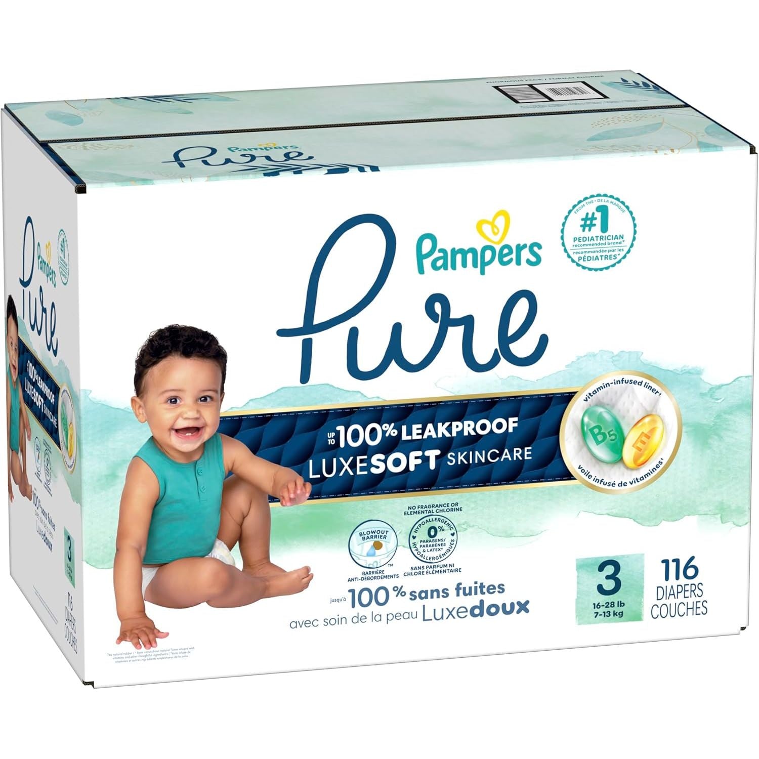 - Pampers Pure Protection Baby Diapers, Size 3 (16-28 lbs), 116 Count, Up to 100% Leakproof, Premium Plant-based Skin Protection, Hypoallergenic Soft Diapers