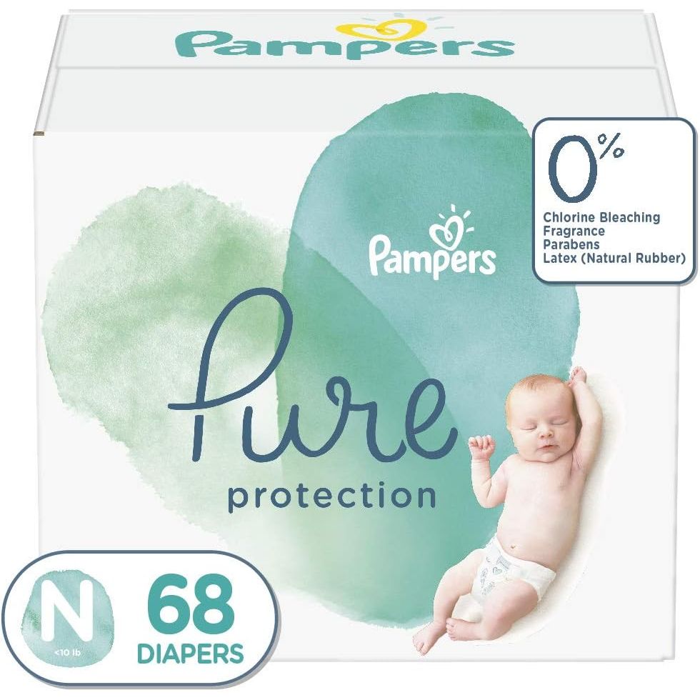 Your search is over. Everything you’ve been waiting for in a diaper, you’ll find with Pampers Pure. Our most premium protection for your newborn. MADE FOR SKIN HEALTH We've carefully crafted Pampers Pure diapers with plant-based ingredients and a shea butter infused liner that moisturizes to help nourish baby's skin. Pampers Pure Protection diapers are irresistibly soft and breathable. Now with NEW & IMPROVED softness! 2x softer than Honest diapers to help keep your baby comfy. Our luxury diapers are approved by the Skin Health Alliance. Use with Pampers Pure Aqua wipes to help protect baby's skin. LEAKAGE PROTECTION Up to 100% leakproof plant-based skin protection*. Pampers Pure Protection features an absorbent Lockaway Core that stays 2X drier** for healthy skin and a Blowout Barrier that helps prevent blowouts. PROTECTION YOU CAN TRUST The ingredients we've chosen to leave out are just as important. That's why Pampers Pure Protection diapers are free of elemental chlorine, fragrance, parabens, and latex***and are hypoallergenic. All Pampers diapers are assembled in the U.S.A. Discover trusted skin protection from the #1 pediatrician recommended brand. PREMIUM DESIGN Our designer, boutique style prints make Pampers Pure just as precious as they are protecting for your baby girl or boy. *Liner enriched with plant-based, skin-soothing ingredients **vs Honest ***No natural rubber