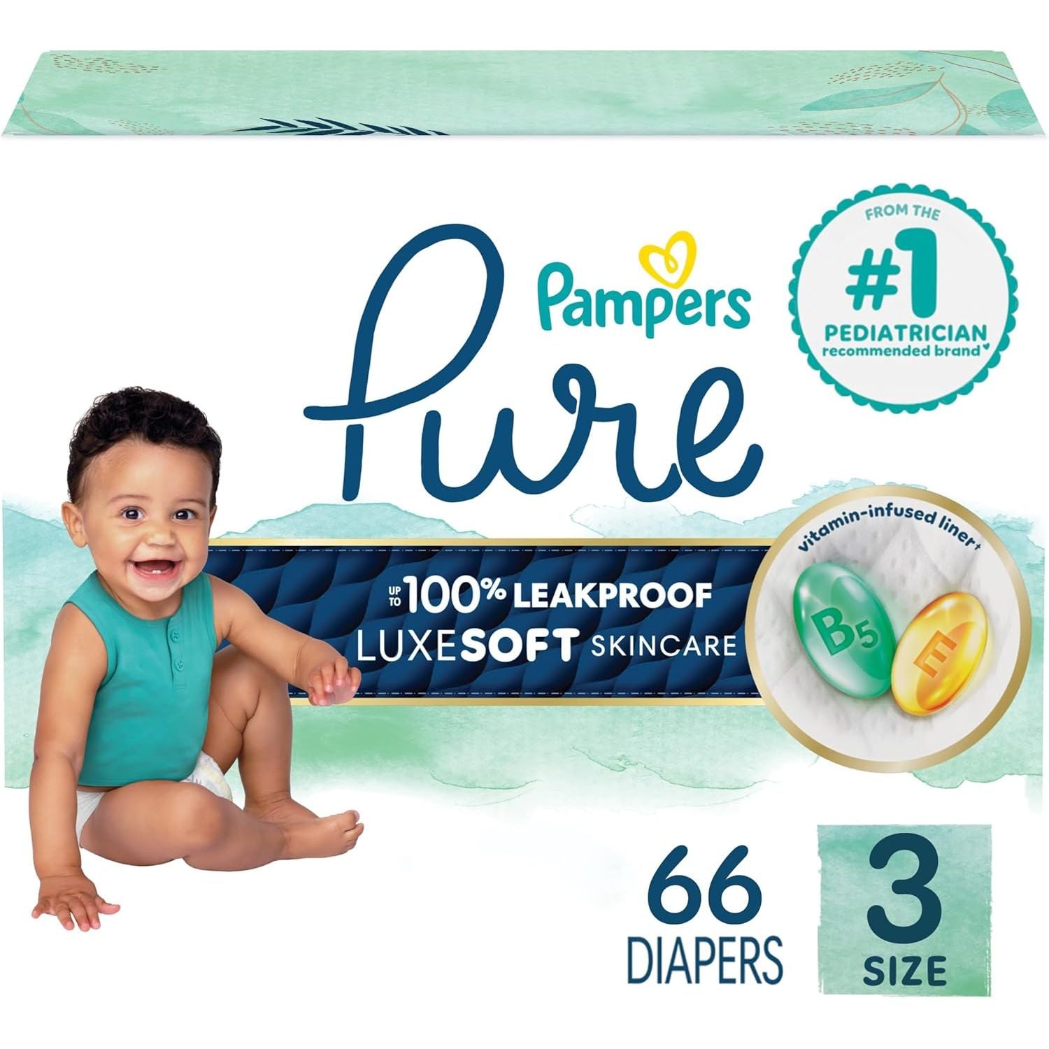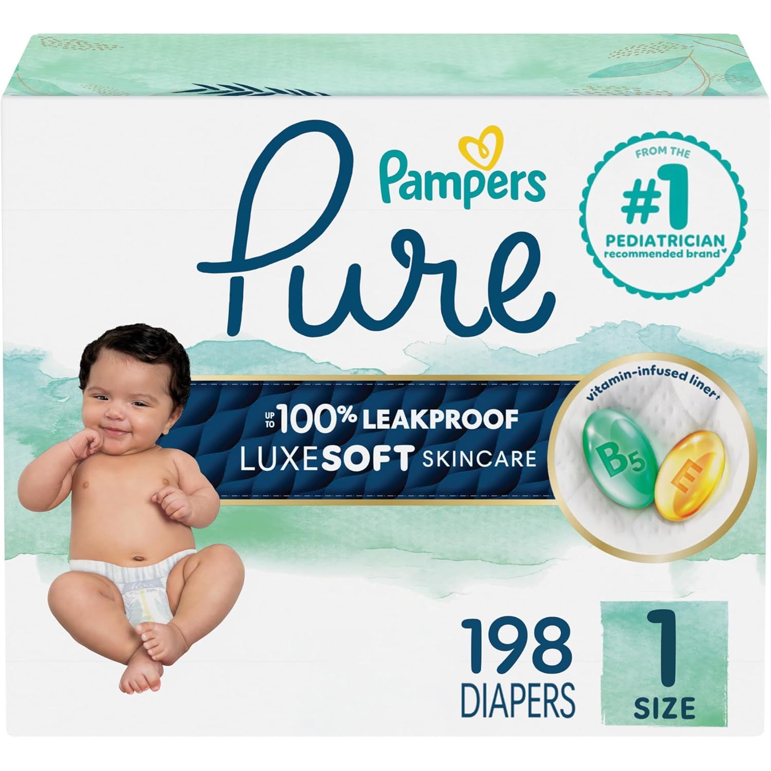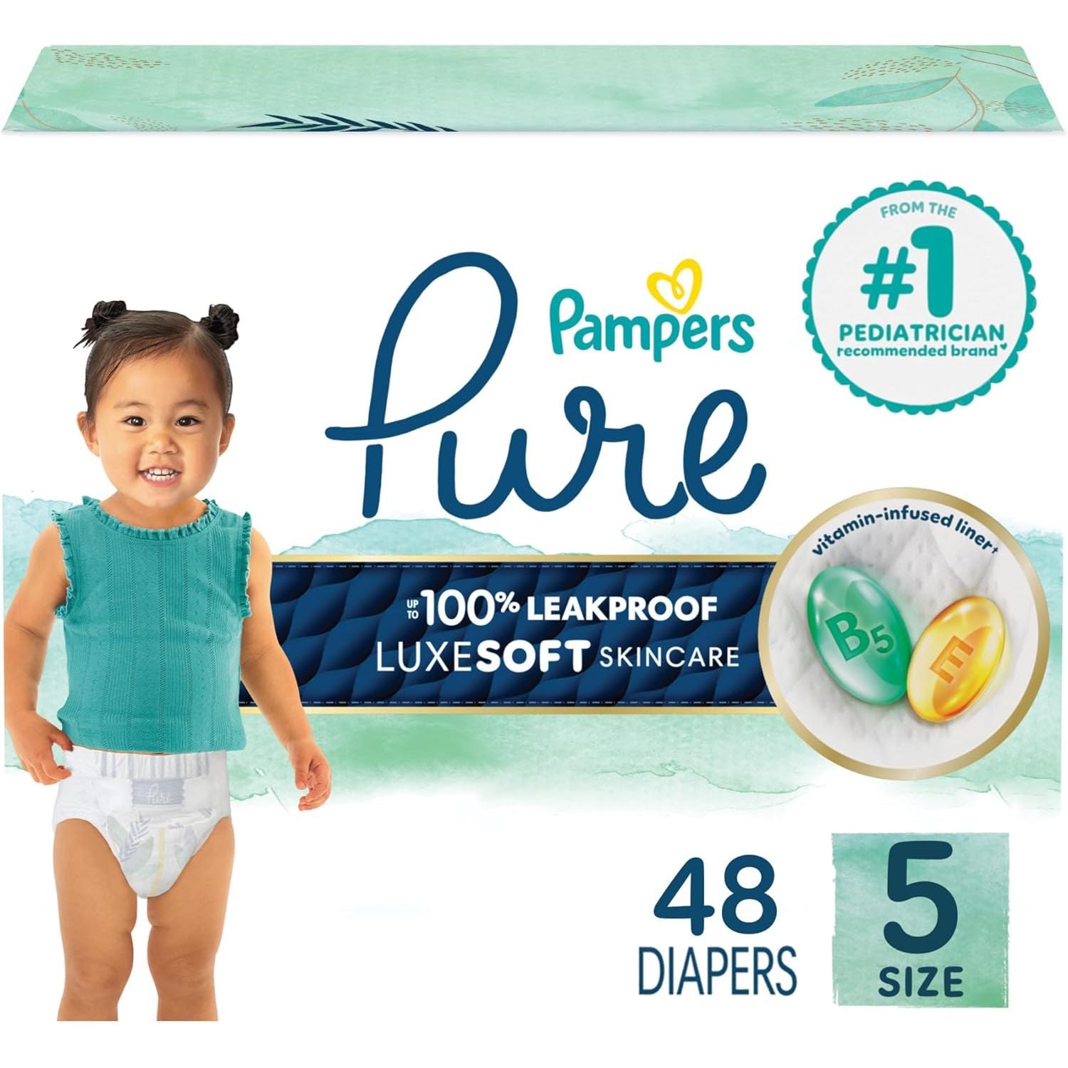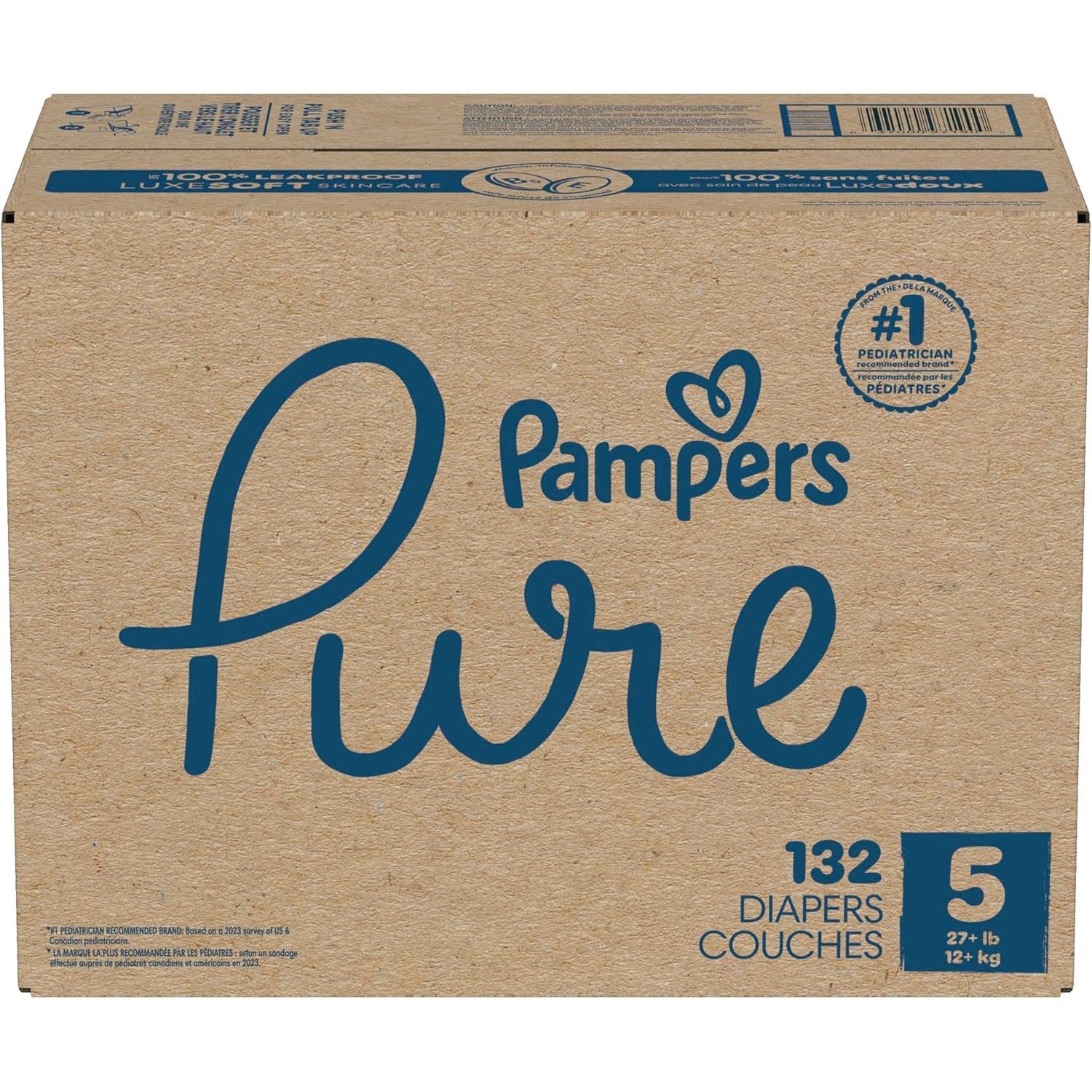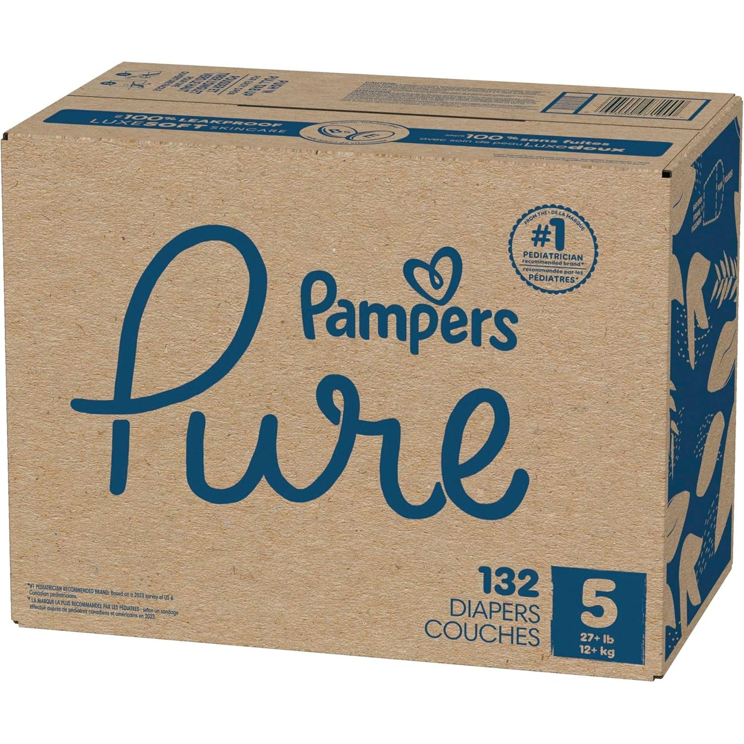 - Pampers Pure Protection Baby Diapers, Size 5 (27+ lbs), 132 Count, Up to 100% Leakproof, Premium Plant-based Skin Protection, Hypoallergenic Soft Diapers