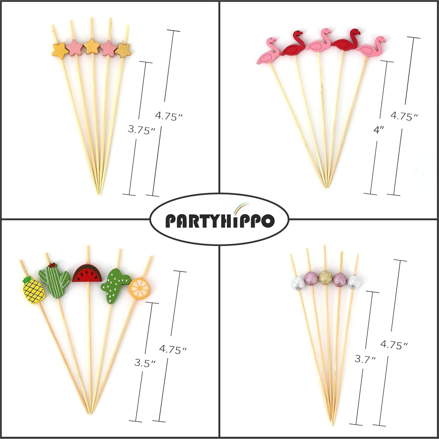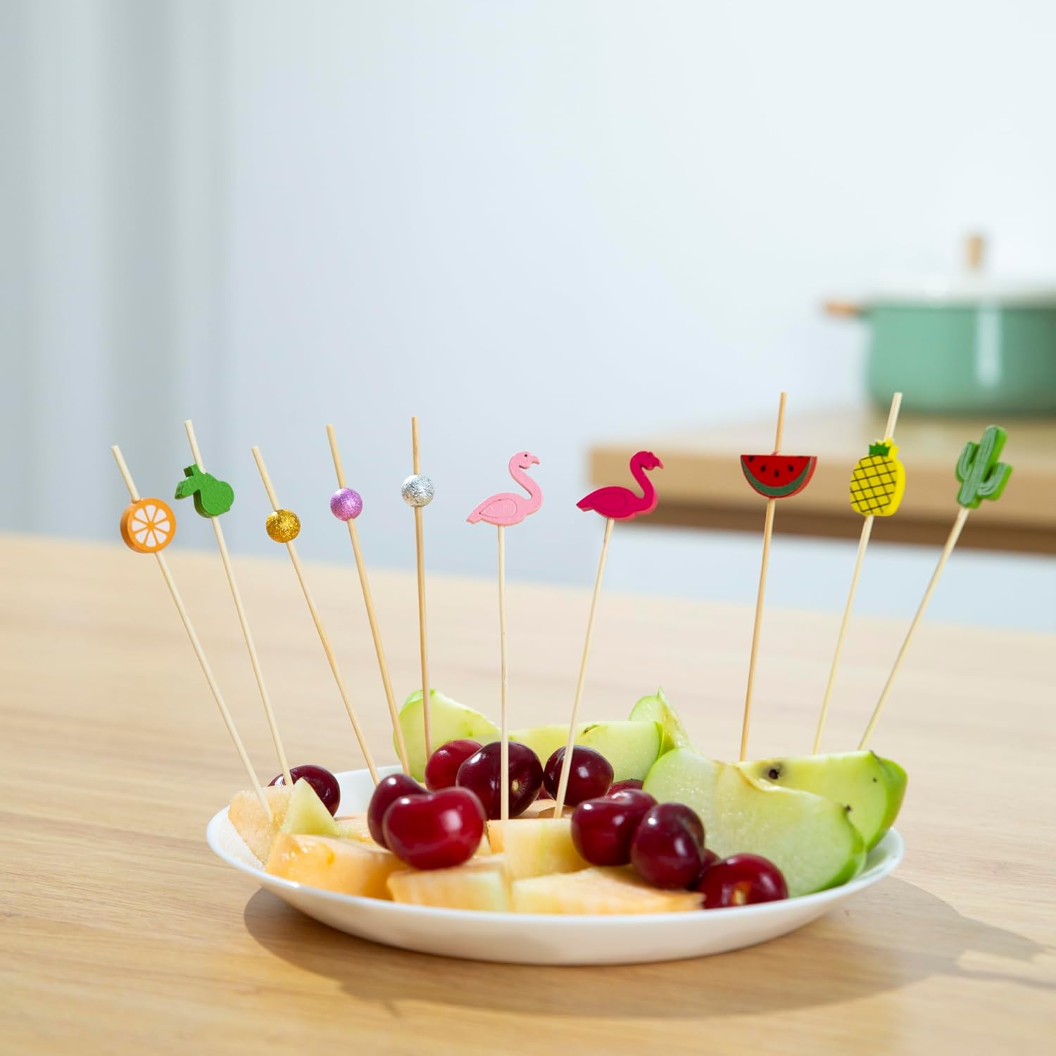 - PARTYHIPPO Bamboo Cocktail Picks 200 Pack – Tropical Fruit Toothpicks 4.7 Inch Cocktail Sticks for Appetizers, Fruit, Cheese, Drinks, Party Supplies (Fruit)