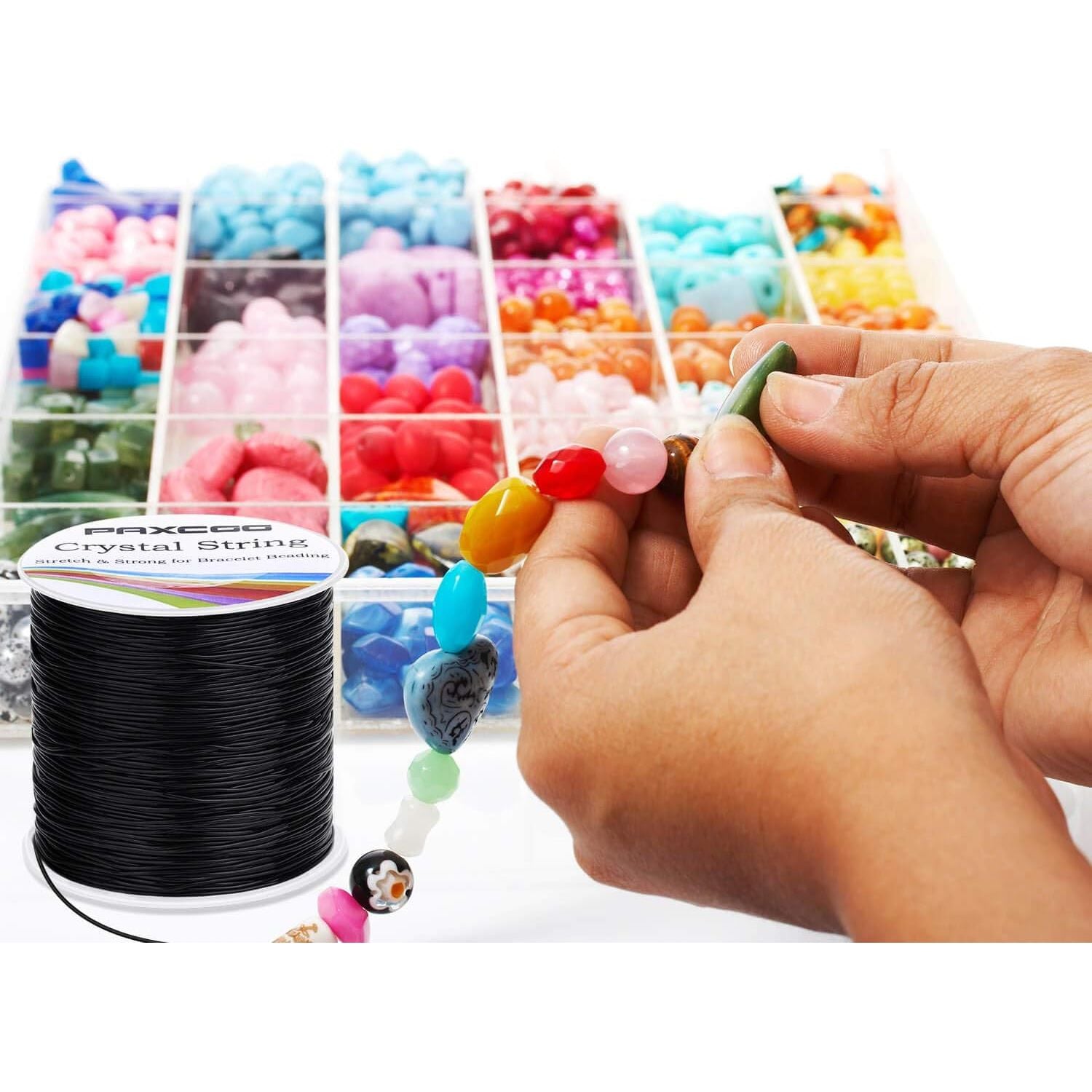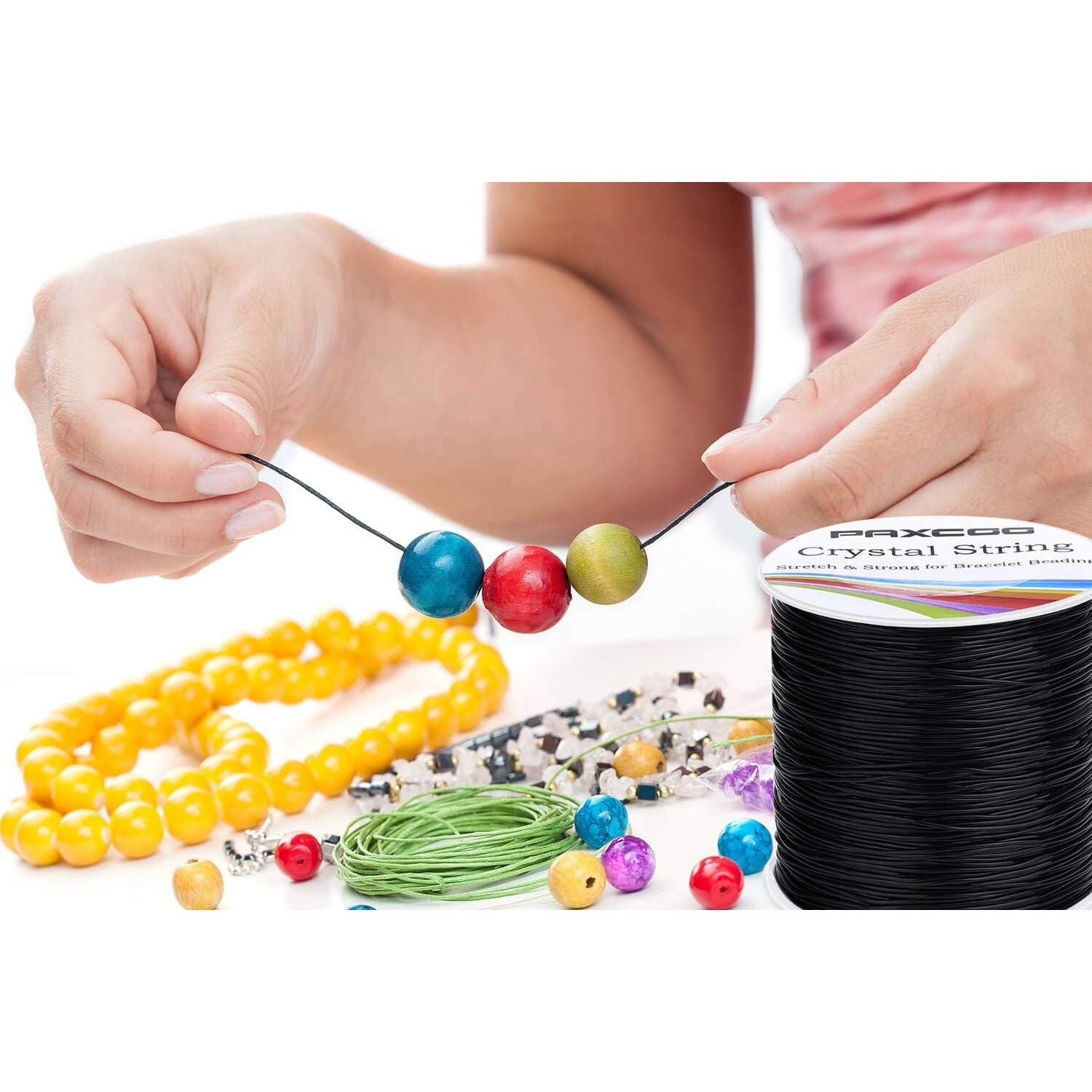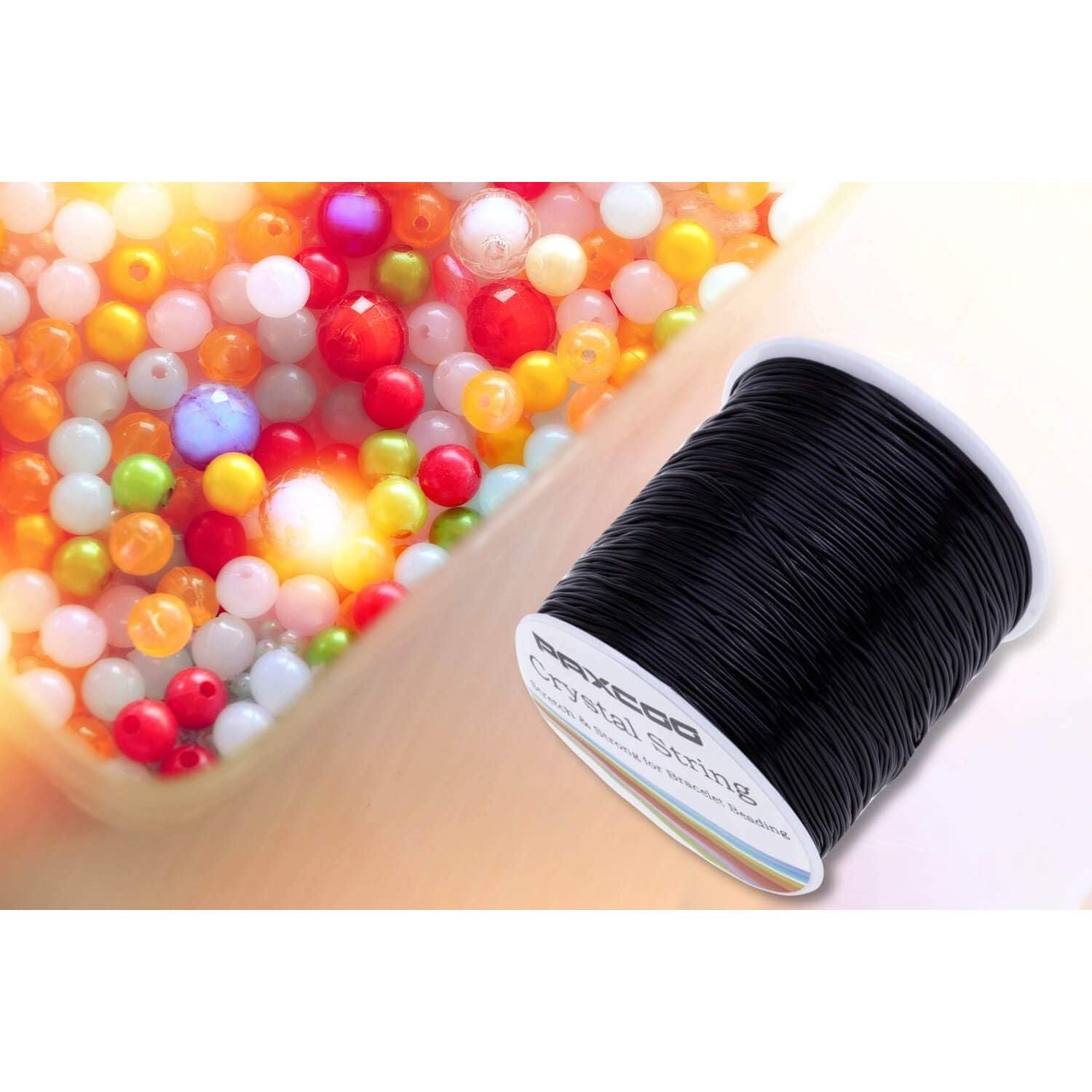 Paxcoo Stretchy String for Bracelets, 0.8 mm Black Elastic String Bracelet Cord Jewelry Bead Thread for Bracelets, Necklaces, Beading and Jewelry Making
