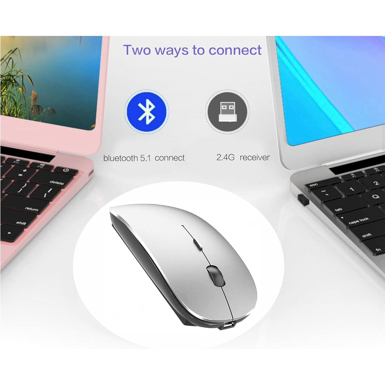 • 【 BLUETOOTH 5.2 + 3.0 +2.4G USB Receiver +USB C adapter Wireless Bluetooth Dual-Mode Mouse】You can switch between Bluetooth mode or 2.4G mode,Compatible systems are: iPadOS、 macOS、apple / Windows 、win7/8/10/11, UNIX, Linux, Chrome OS. ❮Bluetooth mode is available for all Bluetooth-enabled laptops, MacBook pro macbook air macbook Mac iMac (ipad pro ipad air ipad mini ipad10th iPad9th, iPhone, iMac, tablet, all-in-one computer, etc. ❯ The 2.4G USB receiver mode is suitable for all laptops, desktops, all-in-ones, Dell, HP, Mac, iMAC, etc. with USB/USB C ports.plug and play.