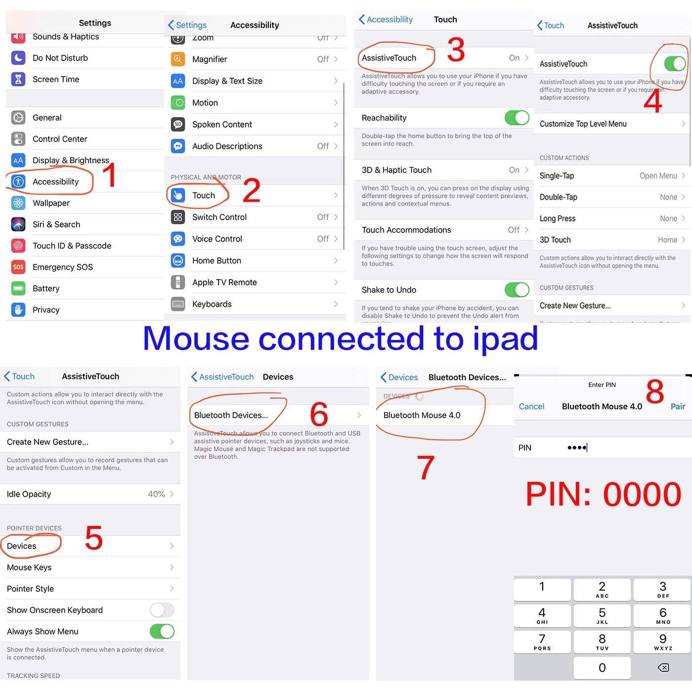 Choose PEIBO dual-mode Bluetooth wireless mouse (BT5.2+BT3.0+2.4Greceiver+USB C adapter), which is more conducive to our connection and use on any computer device, HOW to use Bluetooth mouse mode: First, slide the mouse switch to Bluetooth mode (blue light) > open laptop system preferences settings> turn on Bluetooth function >, when laptop Bluetooth is searching for nearby Bluetooth devices> you need to press and hold the blue button at the bottom of the mouse '' for 3 -4 seconds, The blue light flashes . (If there is no Bluetooth button, you can skip this step and click the connection directly).> Bluetooth search there appears Bluetooth 5.2 mouse>click to connect "BT5.2 mouse or BT3.0 mouse (BT3.0 for old laptop)" > connection is successful How to use mouse 2.4G USB receiver mode: First, switch the mouse switch to 2.4G mode (green light)> Then remove the USB receiver from the slot on the bottom of the mouse > Plug the USB receiver into the USB port of your laptop,plug and play.(Works with all USB ports and USB c Laptop and desktop ports, (Note: Computers with usb c ports please use with usb c adapter)) How to use the bluetooth mouse on the ipadOS13 and above iPad pro 11/12.9inch ipad air 10.9inch ipad mini 8.3inch iPad 10th gen 9th gen 10.9inch : First, open iPad settings, find accessibility, turn on touch controls, find assistive touch controls, turn on assistive touch controls, then pull down to find the device, turn on the Bluetooth device, then turn on the mouse switch, press and hold the black button on the bottom of the mouse for 3-4 seconds, (If there is no Bluetooth button, you can skip this step and click the connection directly).your iPad will search for a Bluetooth 5.2 mouse and click "Connect". Pairing password: 0000, (if you can't find the Bluetooth mouse device, please restart the mouse or iPad Bluetooth function, or restart the iPad) How do I charge a wireless mouse? When your mouse pointer does not move or cannot be used, or suddenly disconnects continuously during use, this is the reminder that you need to charge the Bluetooth mouse for about 3 hours. Please use an adapter with an output of no more than 5v for charging, or a power bank, or a USB port on your laptop. (Charging is prohibited on chargers with output 10V or more) Packing list: instruction manual *1, rechargeable Bluetooth 5.2 + BT3.0 + 2.4G USB receiver dual-mode wireless mouse *1, (2.4G USB receiver hidden in the bottom slot of the mouse), USB charging cable *1, USB C adapter*1, packaging box *1.