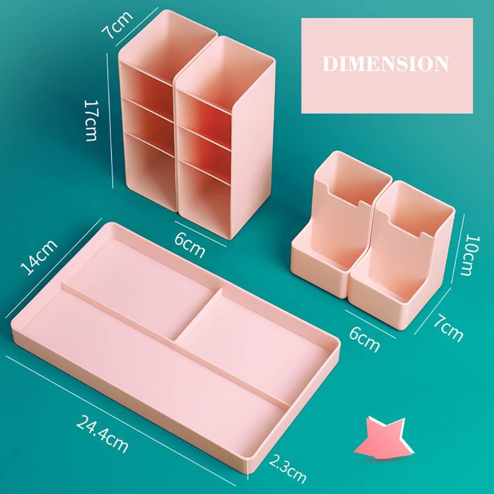 - Stationery organizer- this desk organizer made of ABS plastic, it is durable i consist of 5 parts, 17.5 high, 24.7 long, 14.6 wide(cm)/6.8high, 9.7long ,5.7wide(inch). white color.