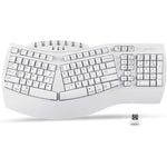 - ERGONOMIC SPLIT-KEY DESIGN: Integrated palm rest supports your wrists, releases median nerve pressure and reduces forearm tension; Natural arm and hand position while typing minimize chances of RSI, and carpal tunnel syndrome
