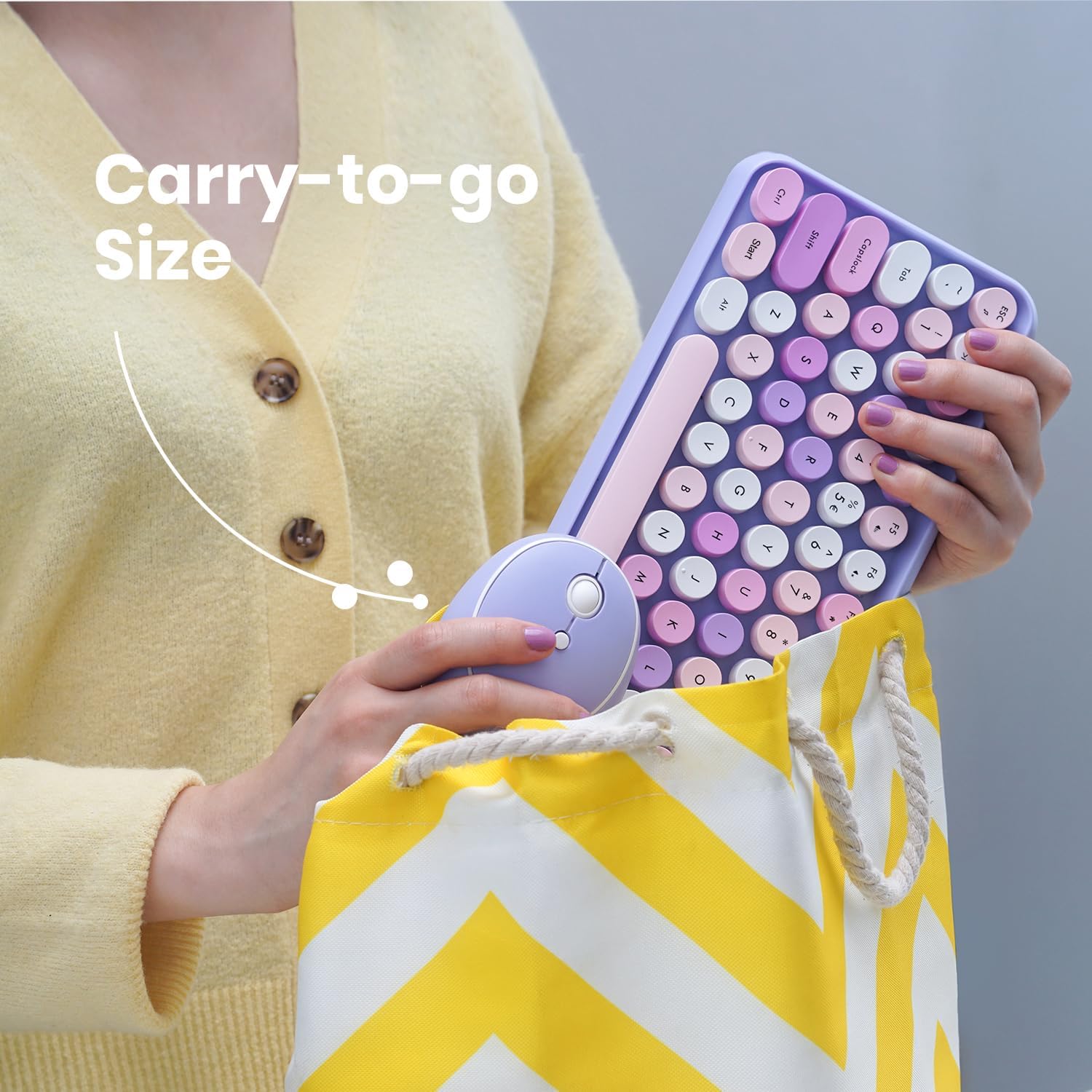 - Perixx PERIDUO-713PP Wireless Mini Keyboard and Mouse Combo - Retro Round Key Caps - Pastel Purple - US English Layout (PD-713PPUS-11953)