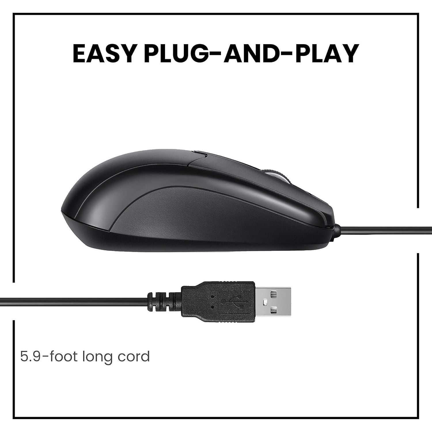 - Perixx PERIMICE-209 3 Button USB Wired Mouse - Optical - 1000 DPI - 5.9 Ft Cable - Black