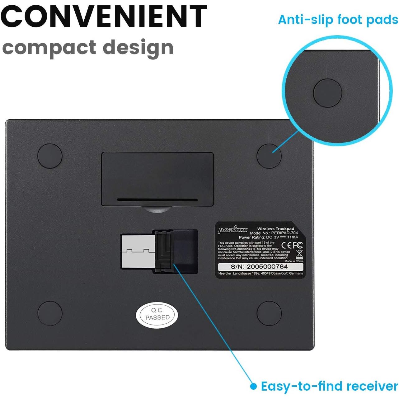 - Perixx PERIPAD-704 Wireless Touchpad, Portable Track Pad for Desktop and Laptop User, Large Size 4.72x3.54x0.74 inches (Wireless), Black