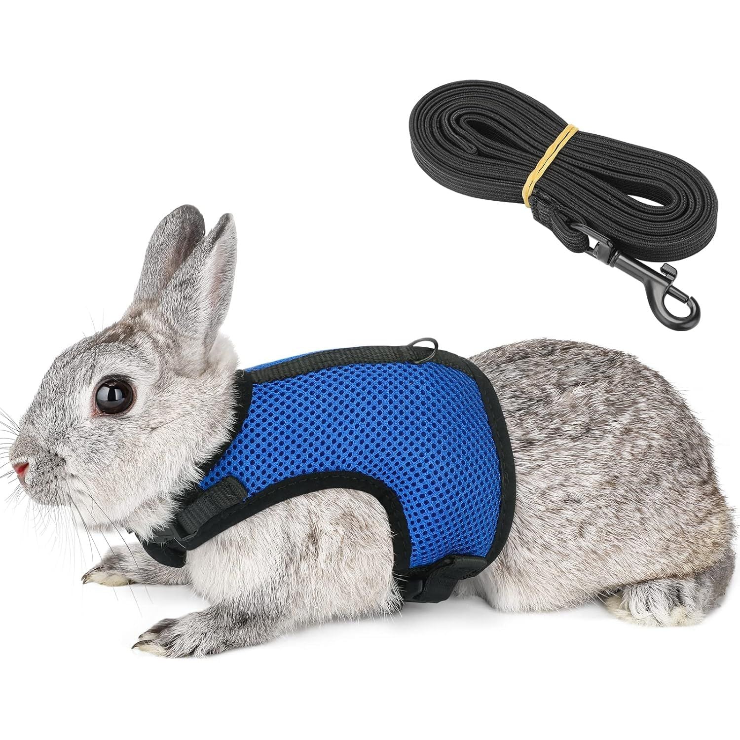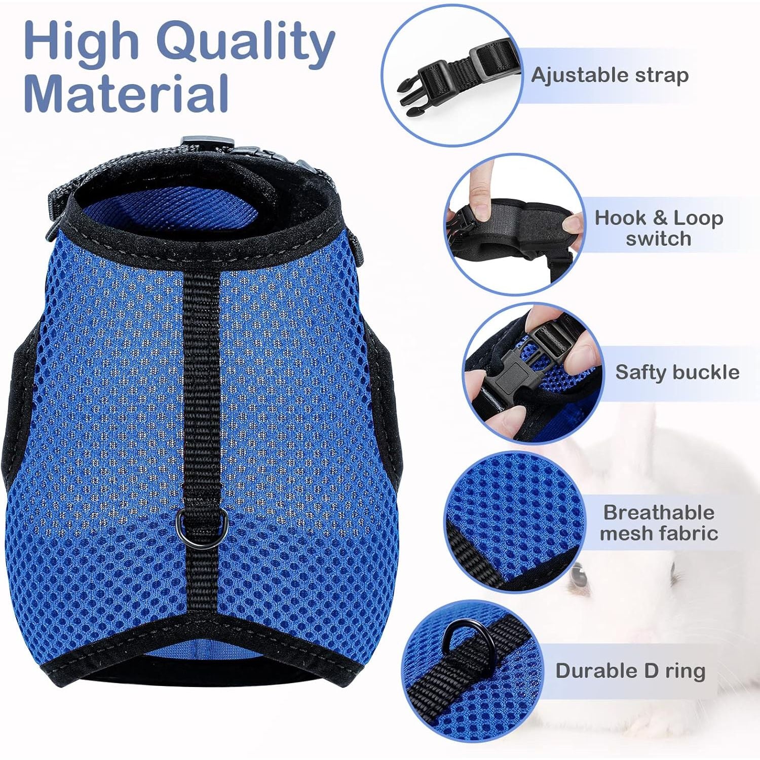 - PETTOM Bunny Rabbit Harness with Stretchy Leash Cute Adjustable Buckle Breathable Mesh Vest for Kitten Small Pets Walking (Blue,S)