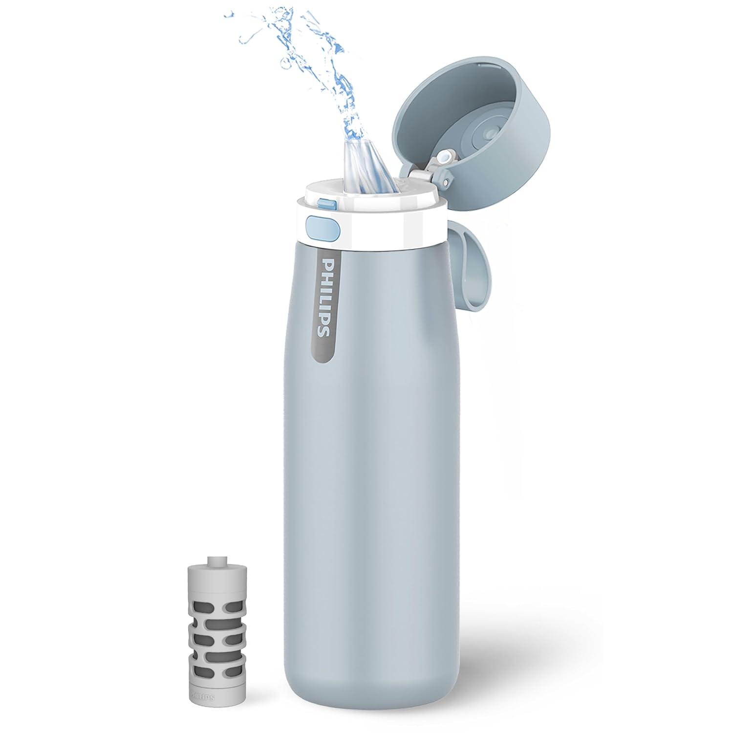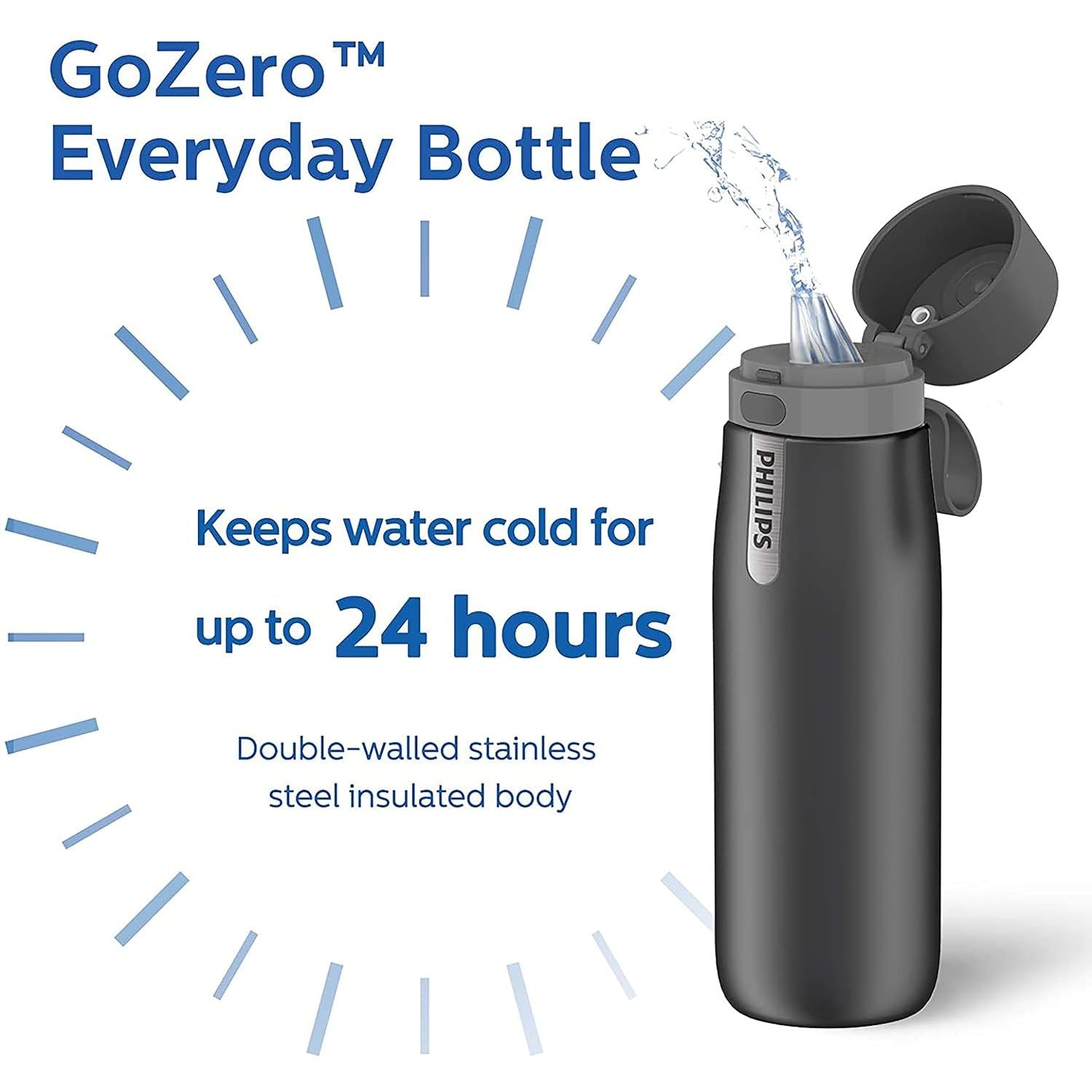- PHILIPS Water Bottle with Filter, Filter Water Bottle Stainless Steel with GoZero Everyday BPA-Free Tap Water Filter, Water Filter Bottle Keep Drink Cold 24 Hours, 1 Filter for 40 gal / 2 Months