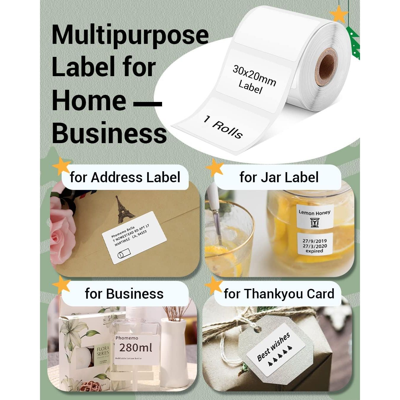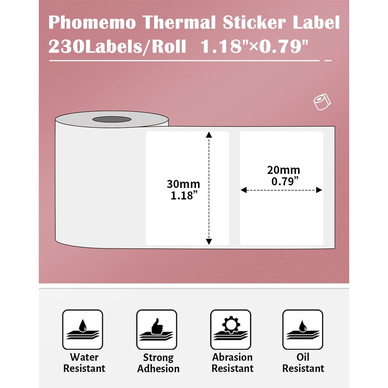 - Phomemo Thermal Labels for M110/M221/M220/M120/M200 Label Printer,1.18" x 0.79" (30x20mm), 320 Labels/Roll, Black on White