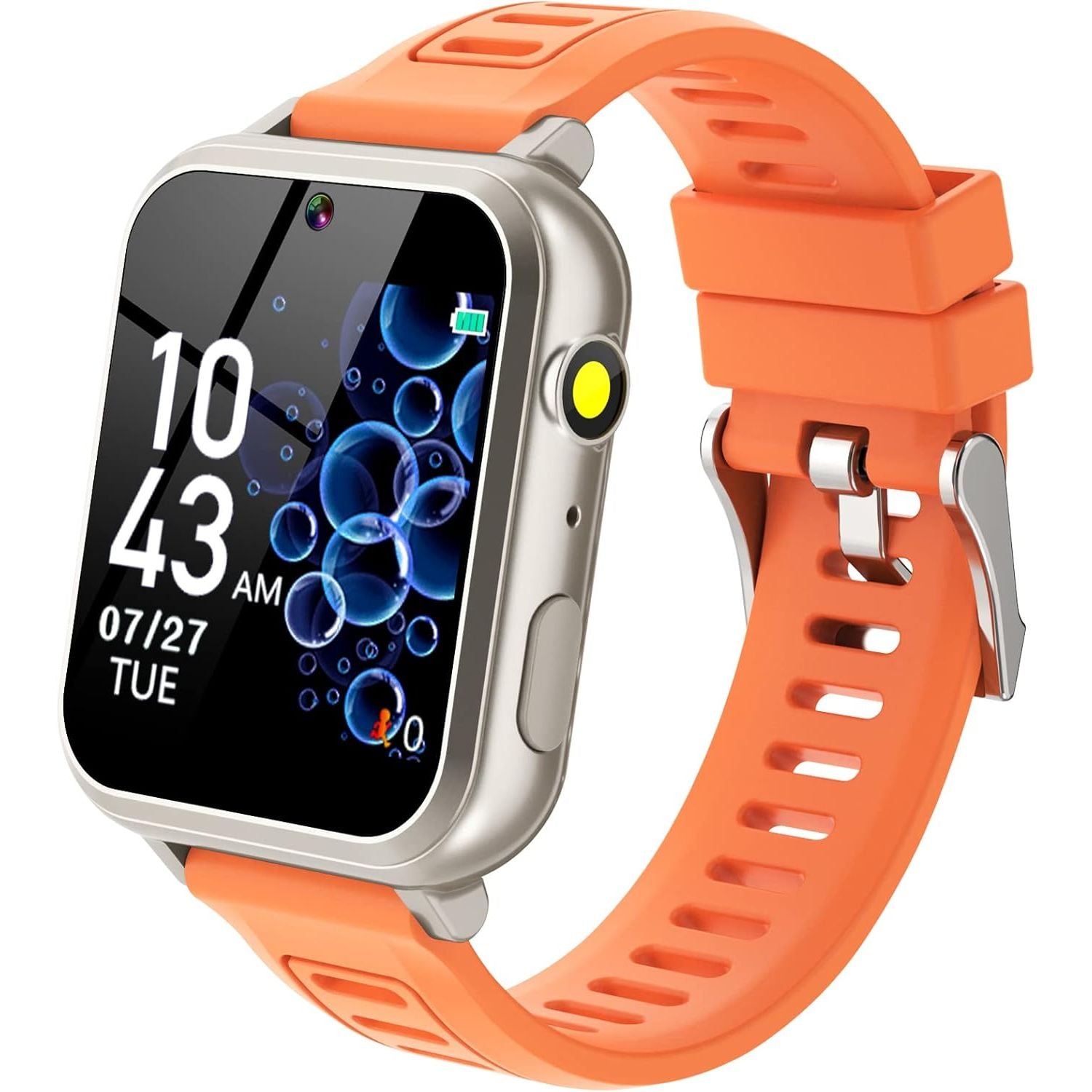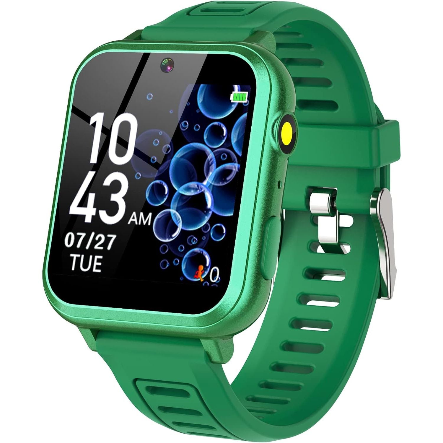 - 👍⌚【Muti-Functional Smart Watch for Kids】Kids smart watch with selfie-cam, 39 puzzle games, torch, MP3 player, voice recorder, pedometer, alarm, stopwatch, calculator, theme, screensaver select, backlight time, audiobooks, learn card, habit tracker, silent profile, five country language, ringtone volume etc.