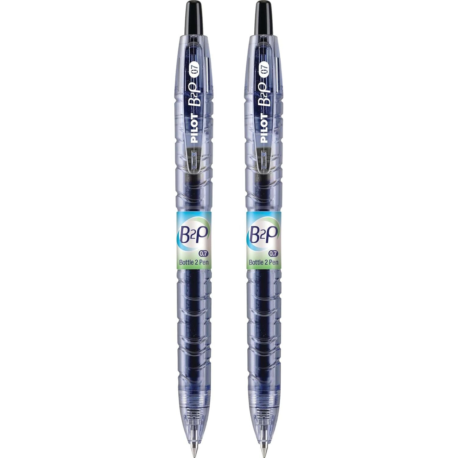 - PILOT B2P - Bottle to Pen Refillable & Retractable Rolling Ball Gel Pen Made From Recycled Bottles, Fine Point, Black G2 Ink, 2-Pack (31605)