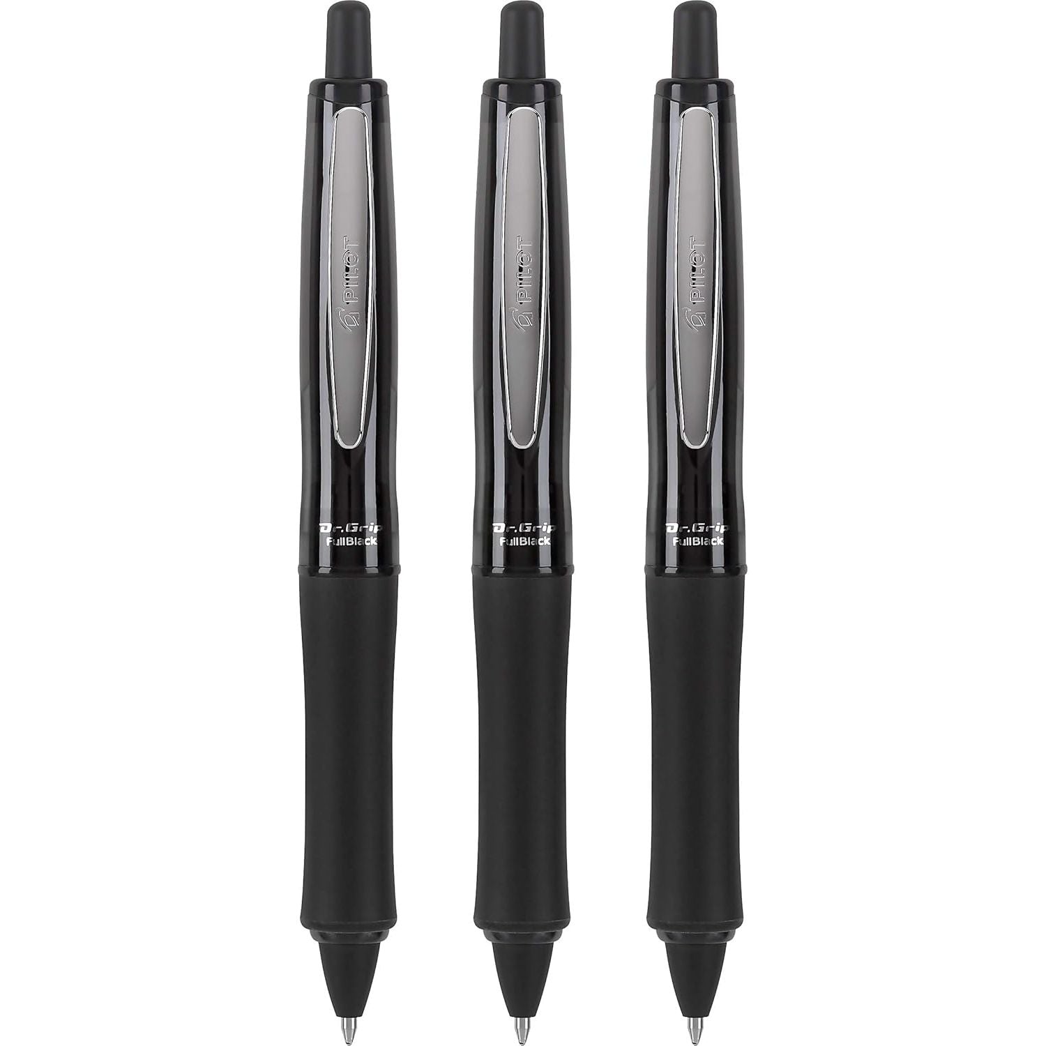 - PILOT Dr. Grip FullBlack Refillable & Retractable Ballpoint Pen, Medium Point, Black Ink, 3-Pack (14634)- Ideal for School, Journaling & Office Writing