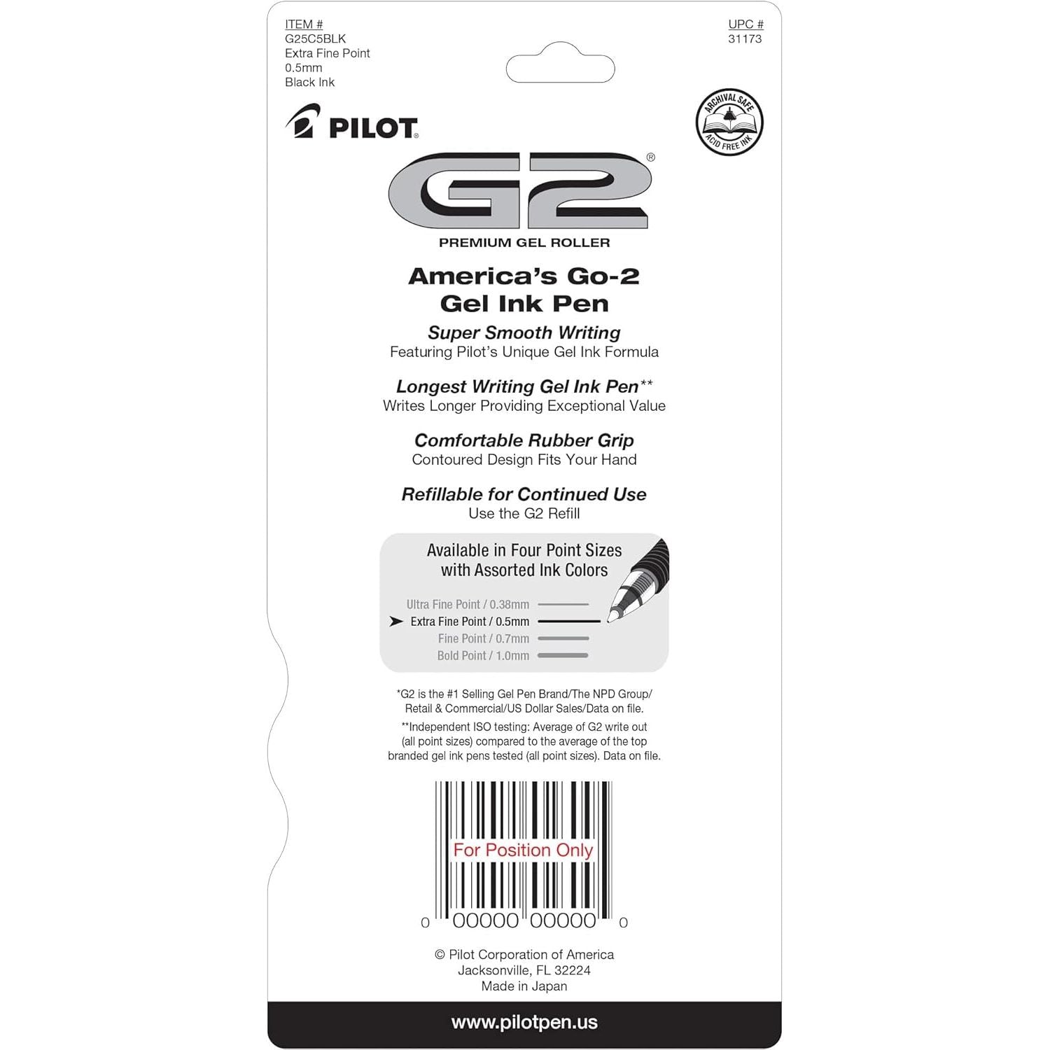 - Pilot G2 Premium Gel Roller Pens, Extra Fine Point 0.5 mm, Gel Pens Black, Pack of 5 - Ideal for School, Journaling & Office Writing