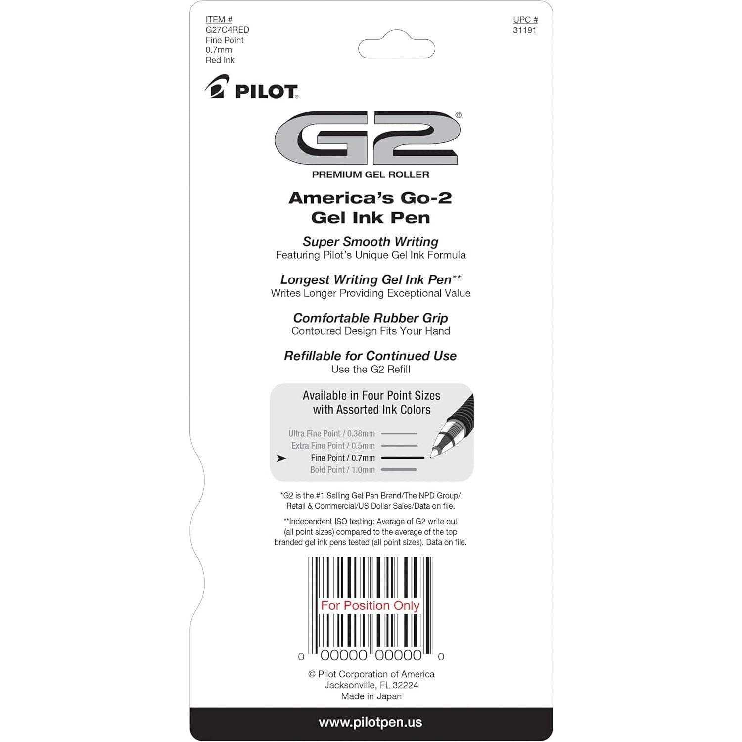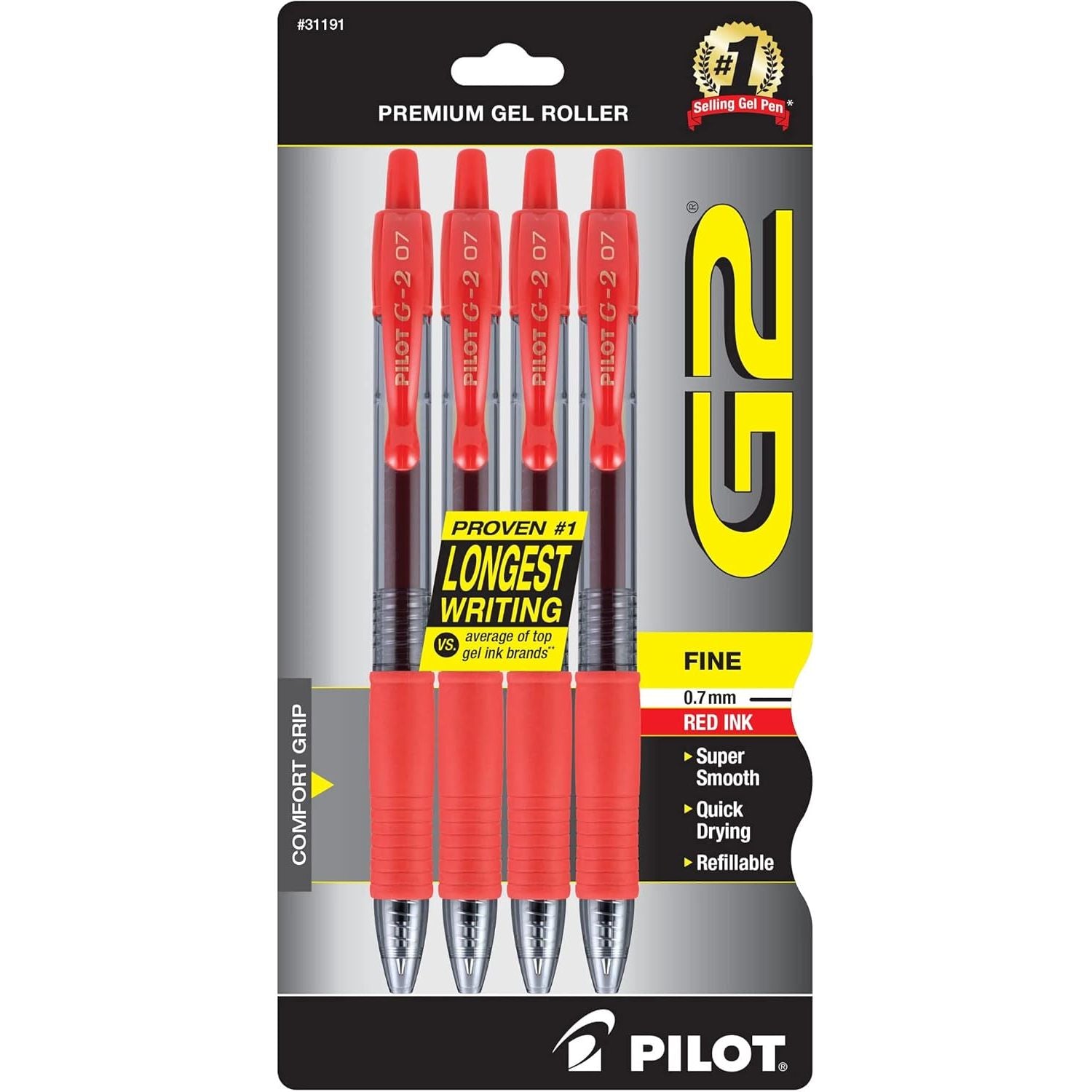 - Pilot G2 Premium Gel Roller Pens, Fine Point 0.7 mm, Red Pens, Pack of 4 - Ideal for School, Journaling & Office Writing
