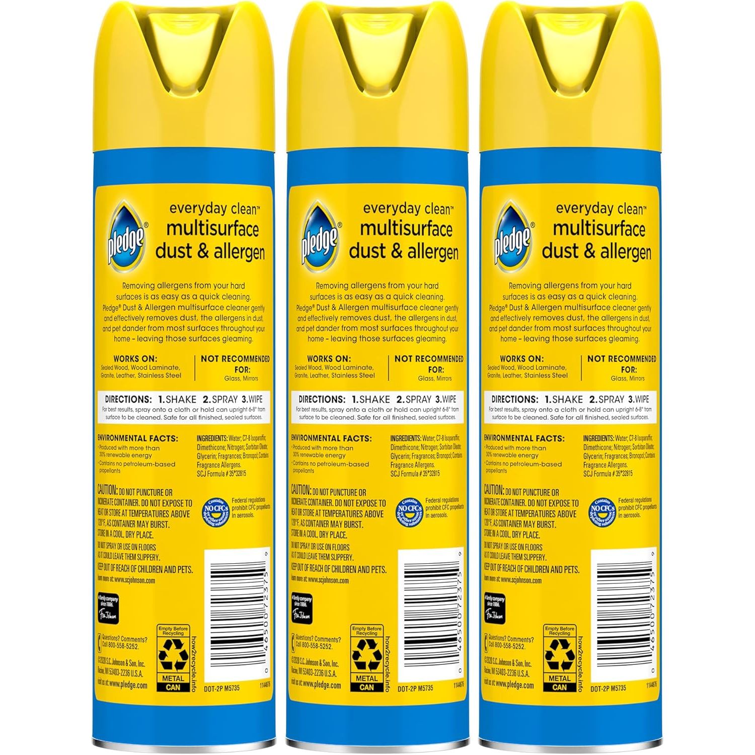 - Pledge Dust & Allergen Multisurface Cleaner, Aerosol Spray, Lemon Scent, 9.7oz (Pack of 3)