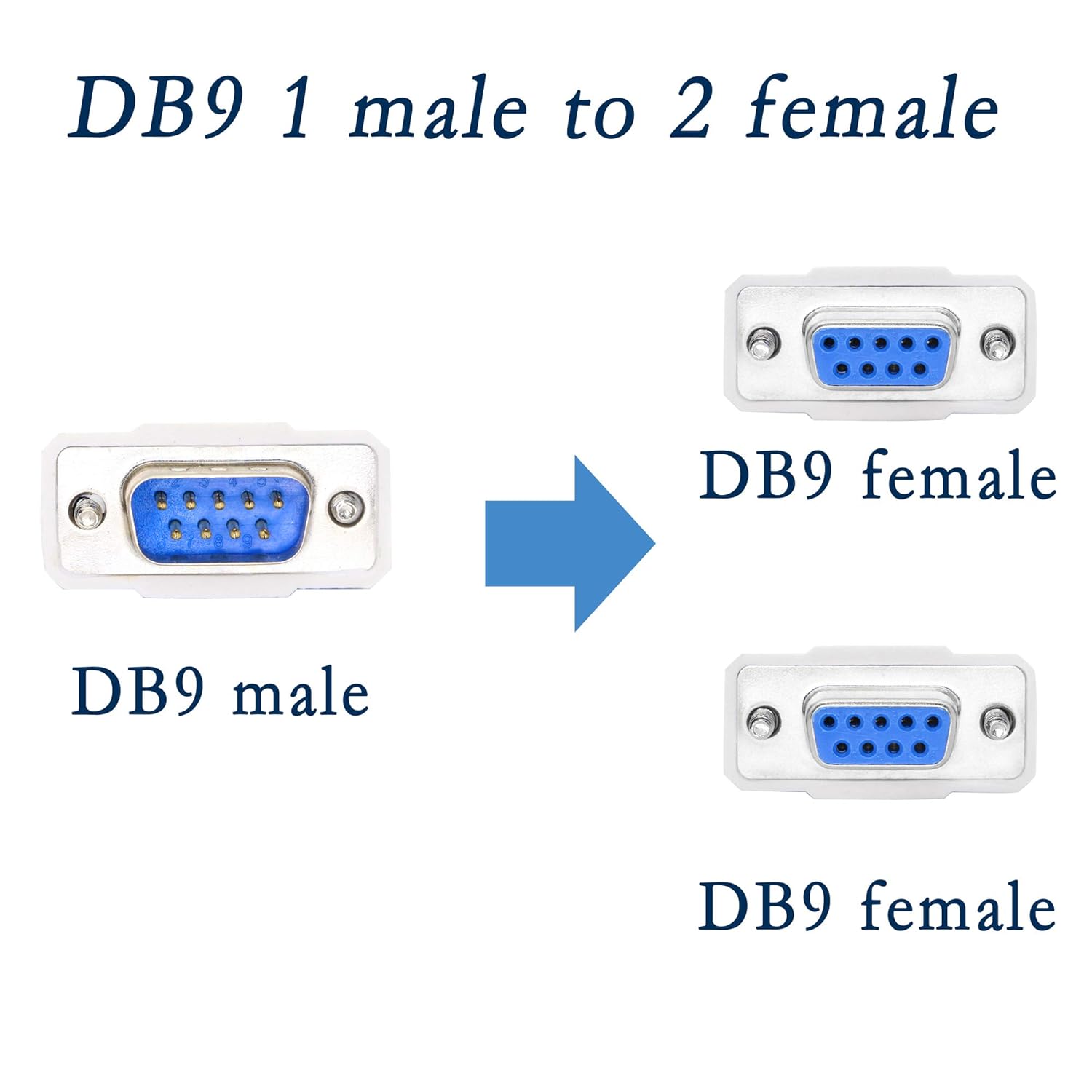 - The DB9 serial splitter cable allows you to flexibly expand computer peripherals where you need it. Each cable is completely shielded, and the connector thumbscrew can provide quick-change connections.