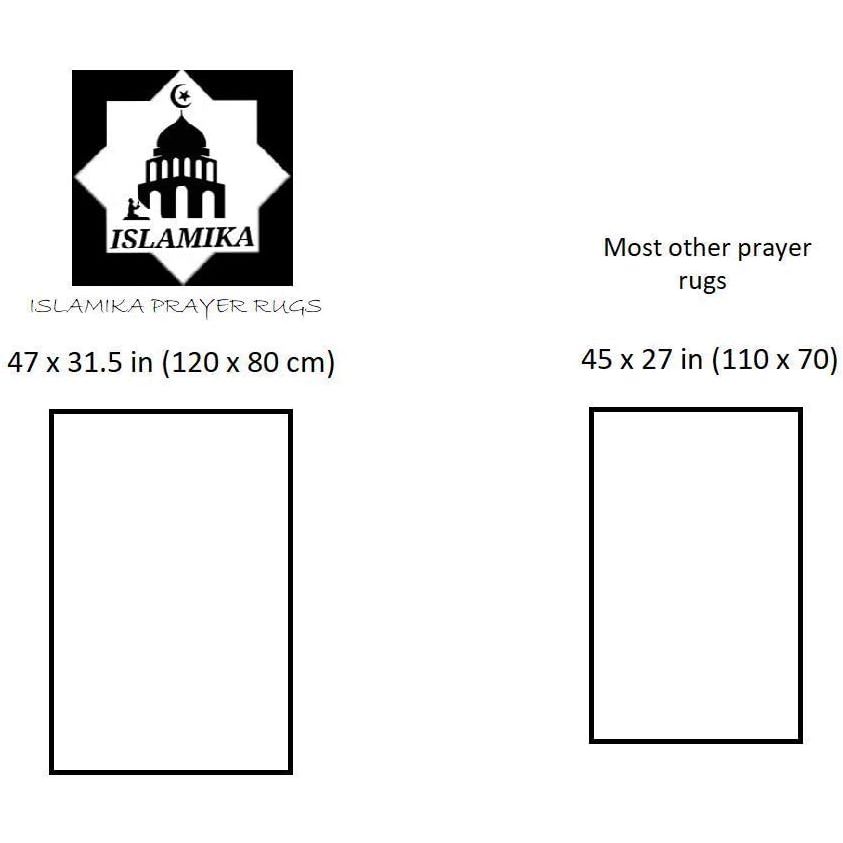 - Larger, bigger, confortable and softer than most other prayer mat. Our muslim prayer mat is 47*31.5