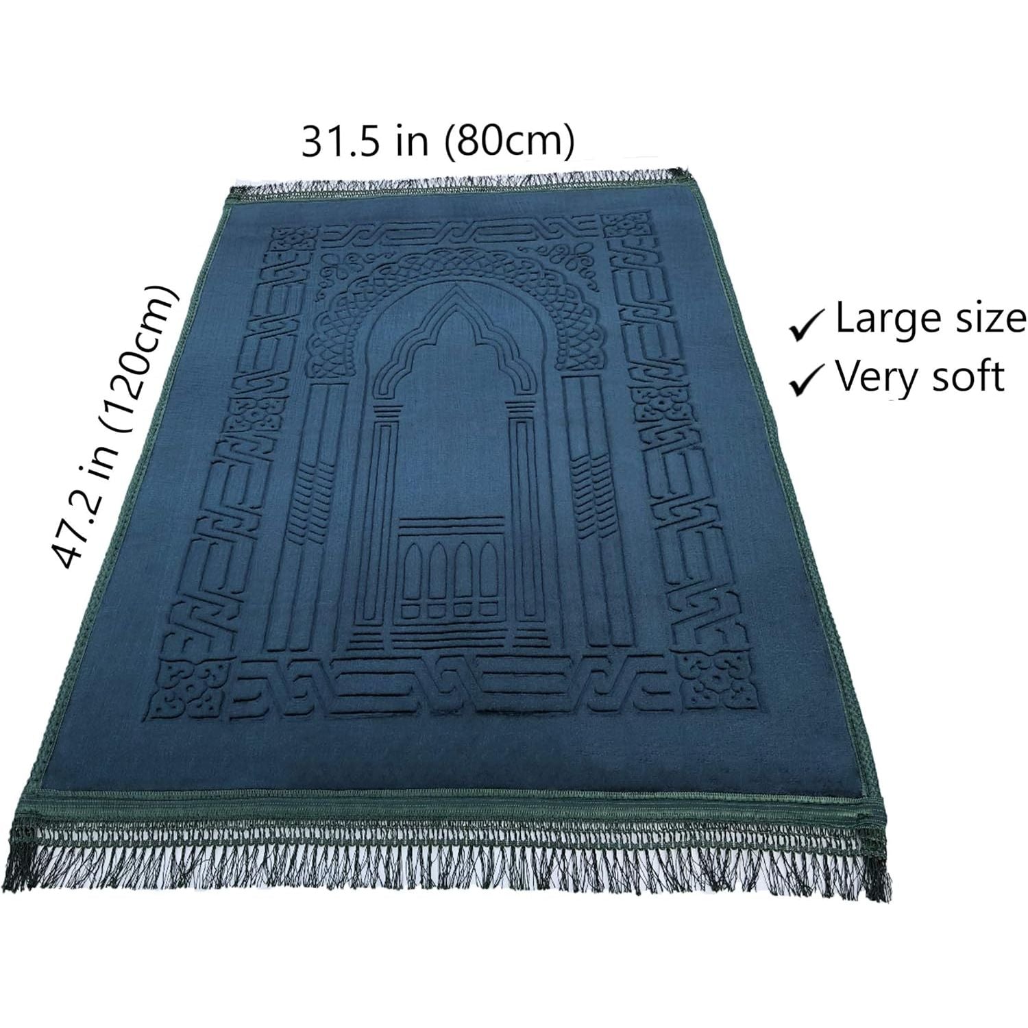 - Prayer Rug Muslim Mat Islamic - Thick Large Padded Sajadah for Kids Men Women with Islam Prayer Beads for Eid Travel Ramadan, Soft Luxury Great for Knees and Forehead(Green)