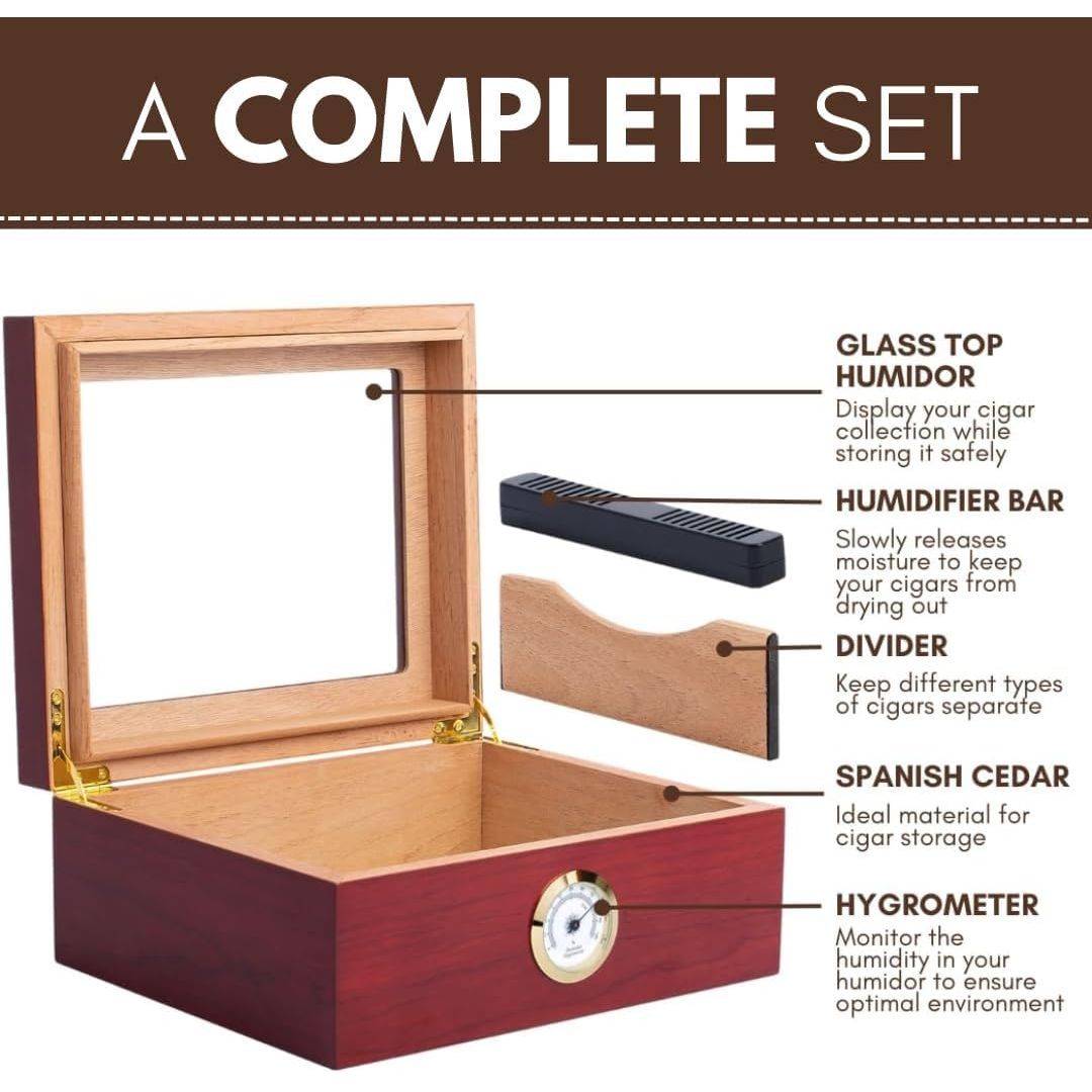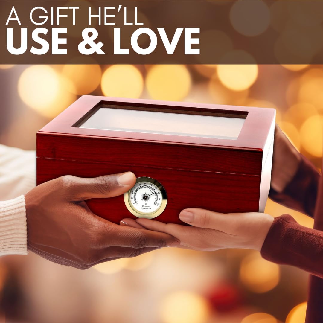 Premium Cigar Humidor for 25-50 Cigars - Elegant Humidor humidor with Hygrometer and Humidifier - Cedar Lined Cigar Box for Optimal Humidity Control (Analog)
