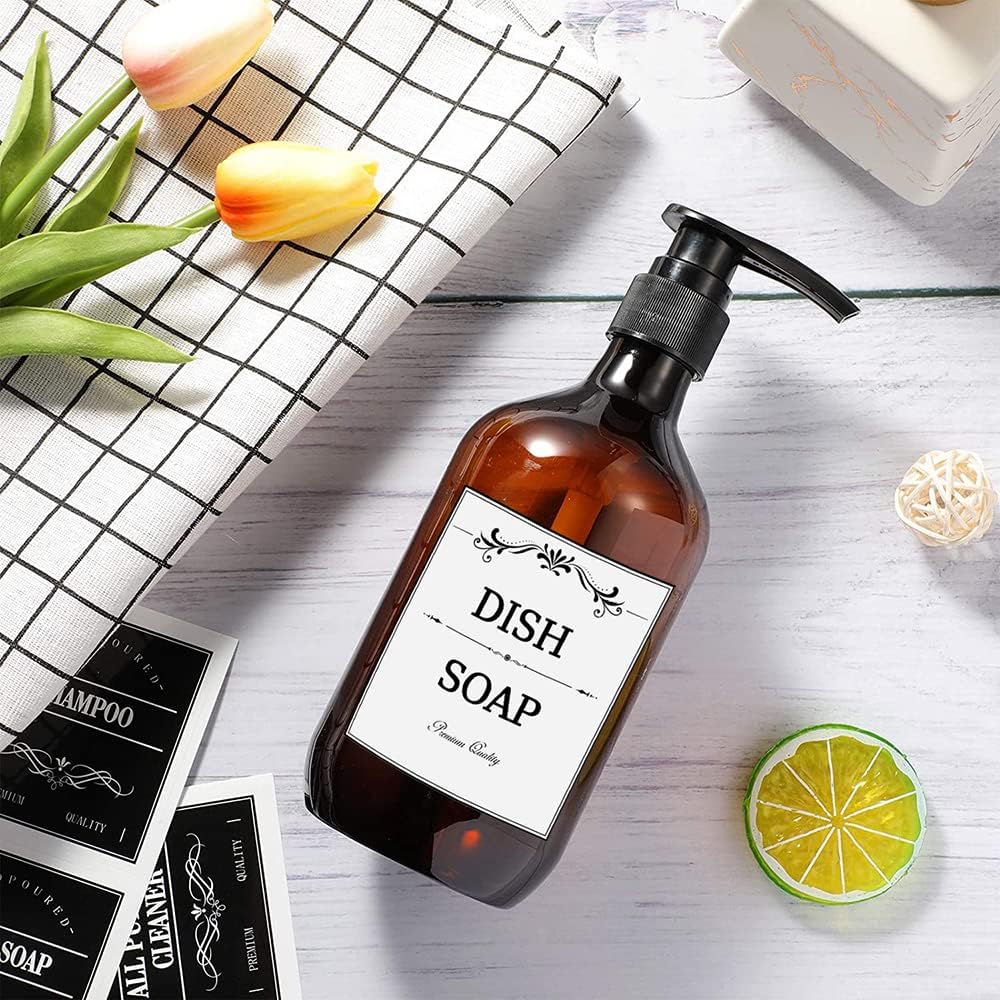 - Printed Bathroom Labels Set 24PCS Waterproof Refillable Bottles Stickers for Dish Soap Body Wash Conditioner Shampoo Display White-Style B