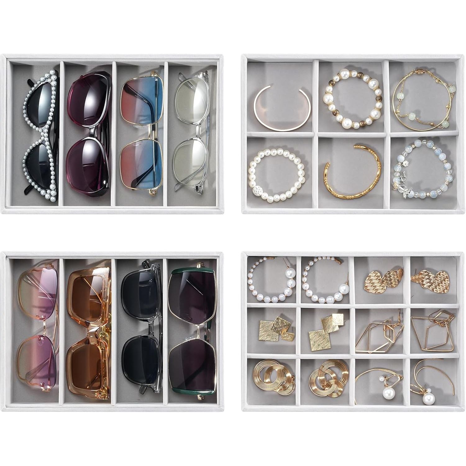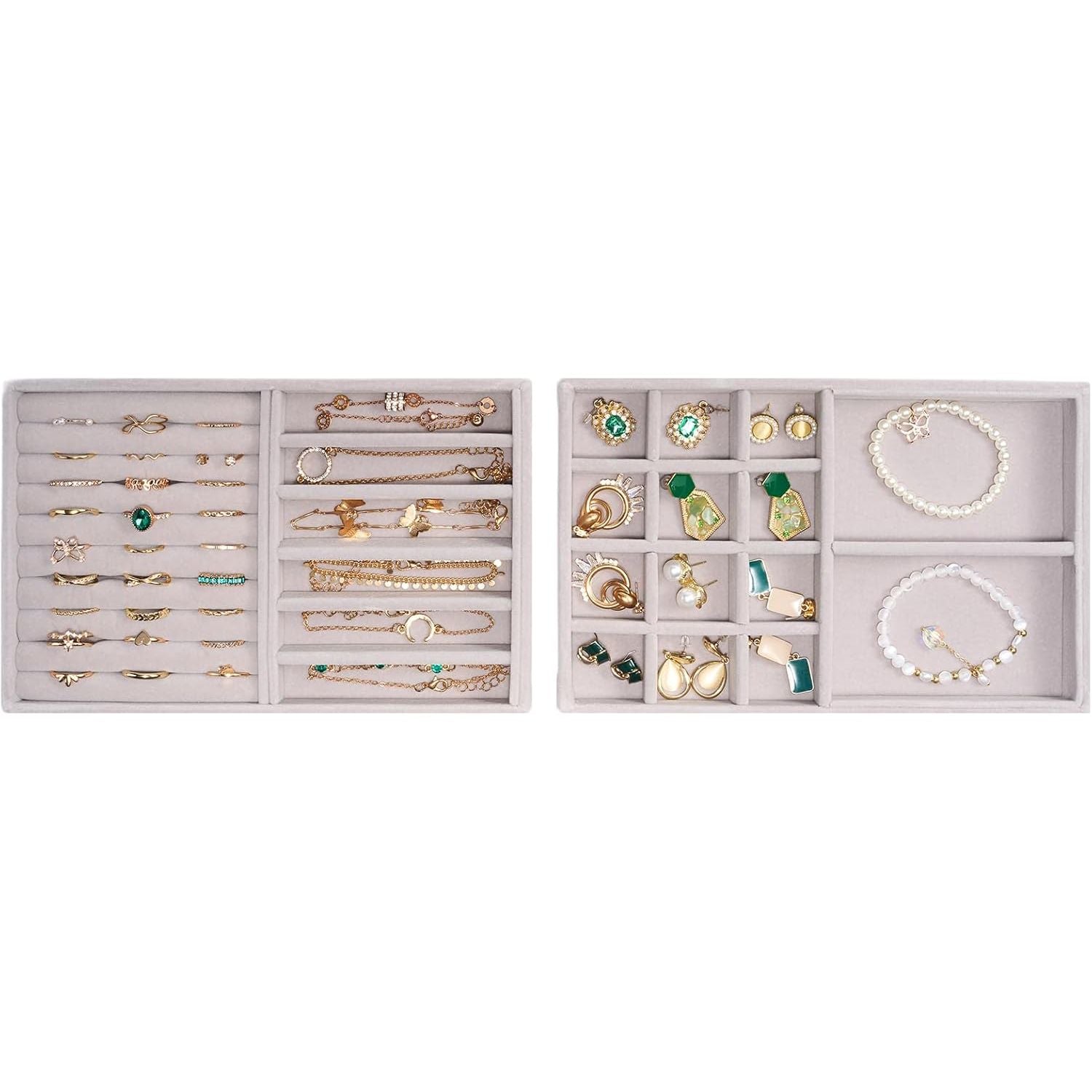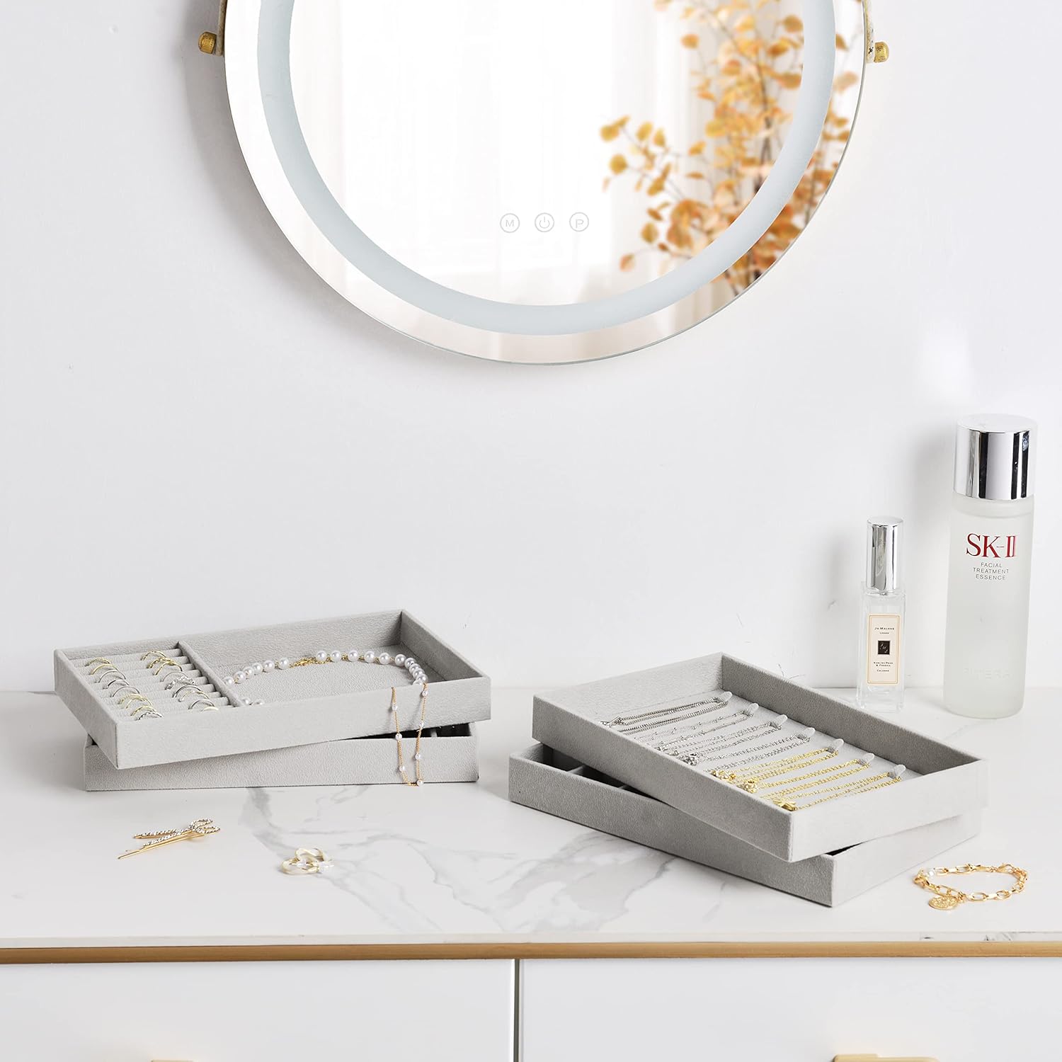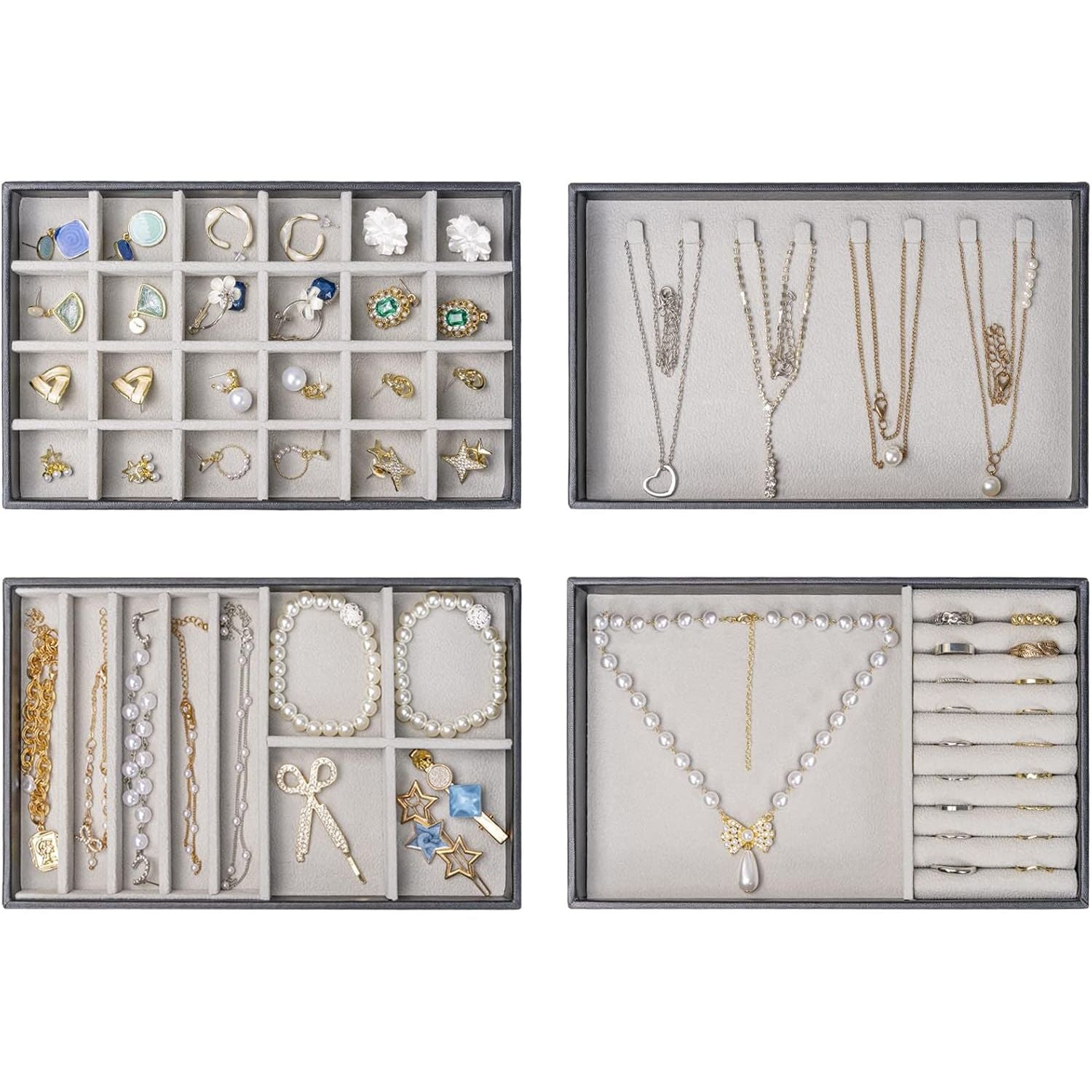 ProCase Stackable Jewelry Organizer Trays for Drawers, Jewelry Drawer Inserts Container Display Case Storage for Earring Necklace Rings Bracelet with Removable Dividers -Grey, 4 Layers