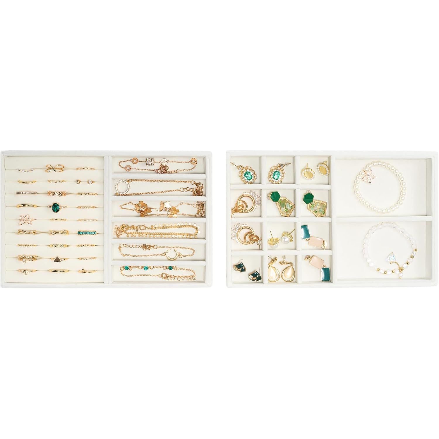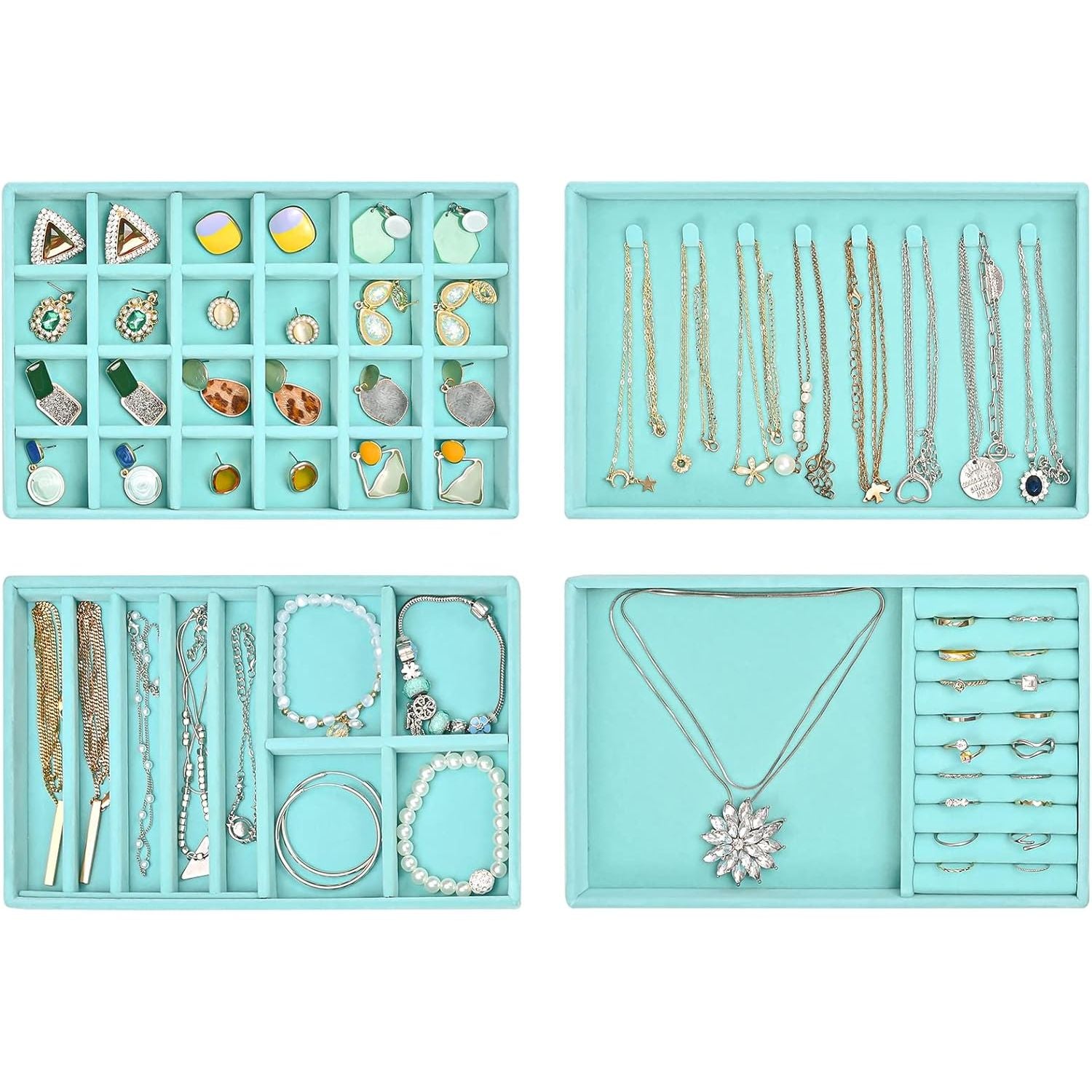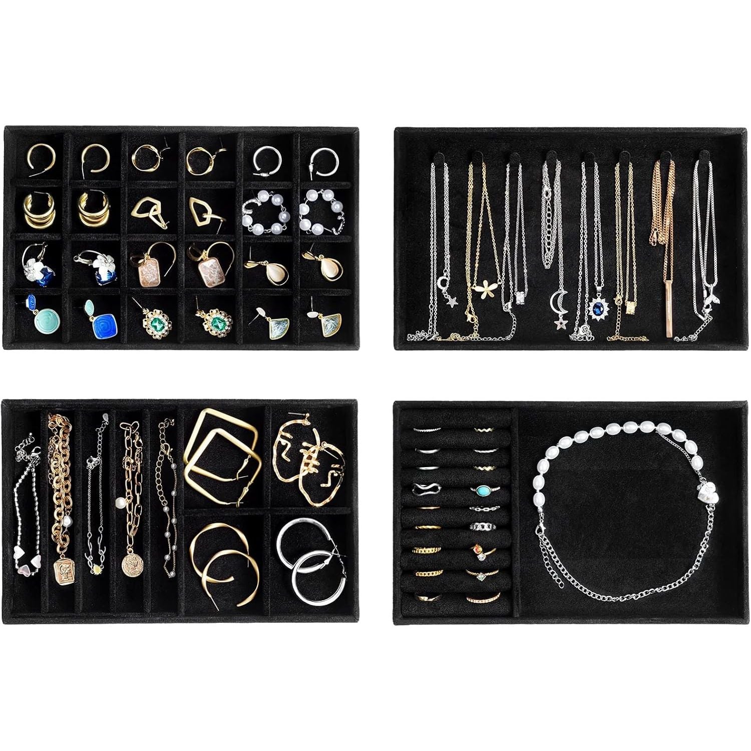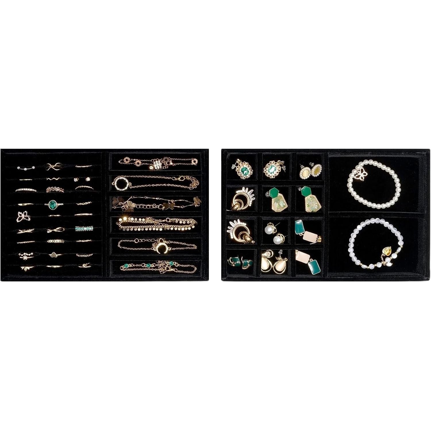 • Each tray: 9.4 x 5.9 x 1.1 inches; These jewelry tray organizers with right sizes will sit perfectly in your dresser drawer, protecting your jewelry from scratches and other damage