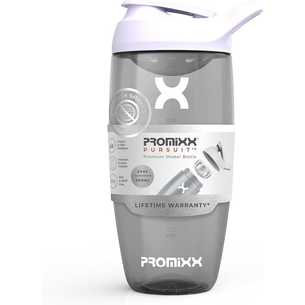 - Promixx Pursuit Protein Shaker Bottle (24 oz) – Silent No-Ball Mixer, Leak-Proof Lid, BPA/BPS & Phthalate-Free ECOZEN – Easy-Clean Shaker Cup for Protein Shakes, Pre & Post-Workout Smoothies