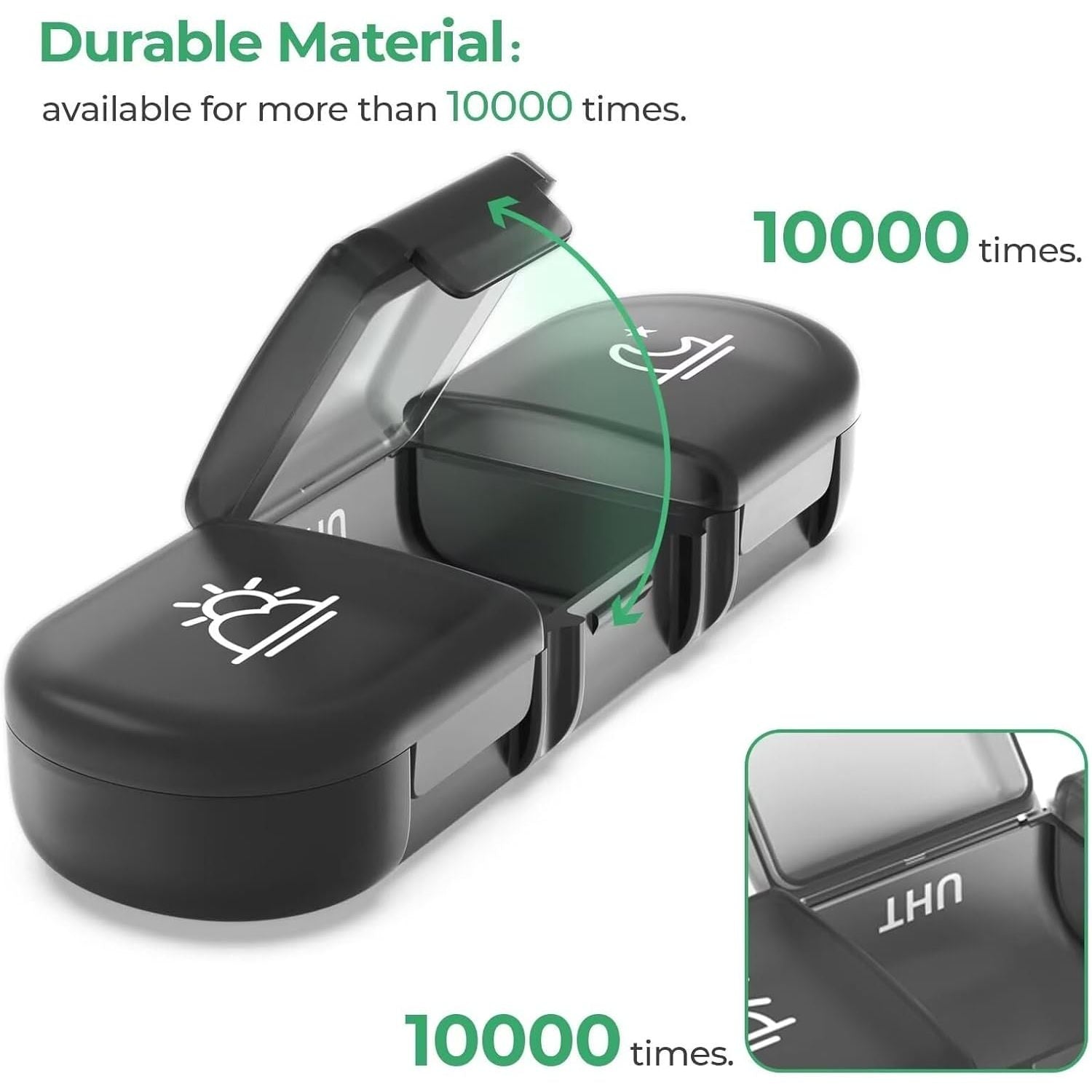 - Durable and BPA-free Pill Box: This premium pill containers is equipped with high-quality solid-state ABS external holders and high-quality food-grade PP daily pill box organizer. Made of BPA-free food-grade materials, it is environmentally friendly and practical to ensure your pills are safe to eat.
