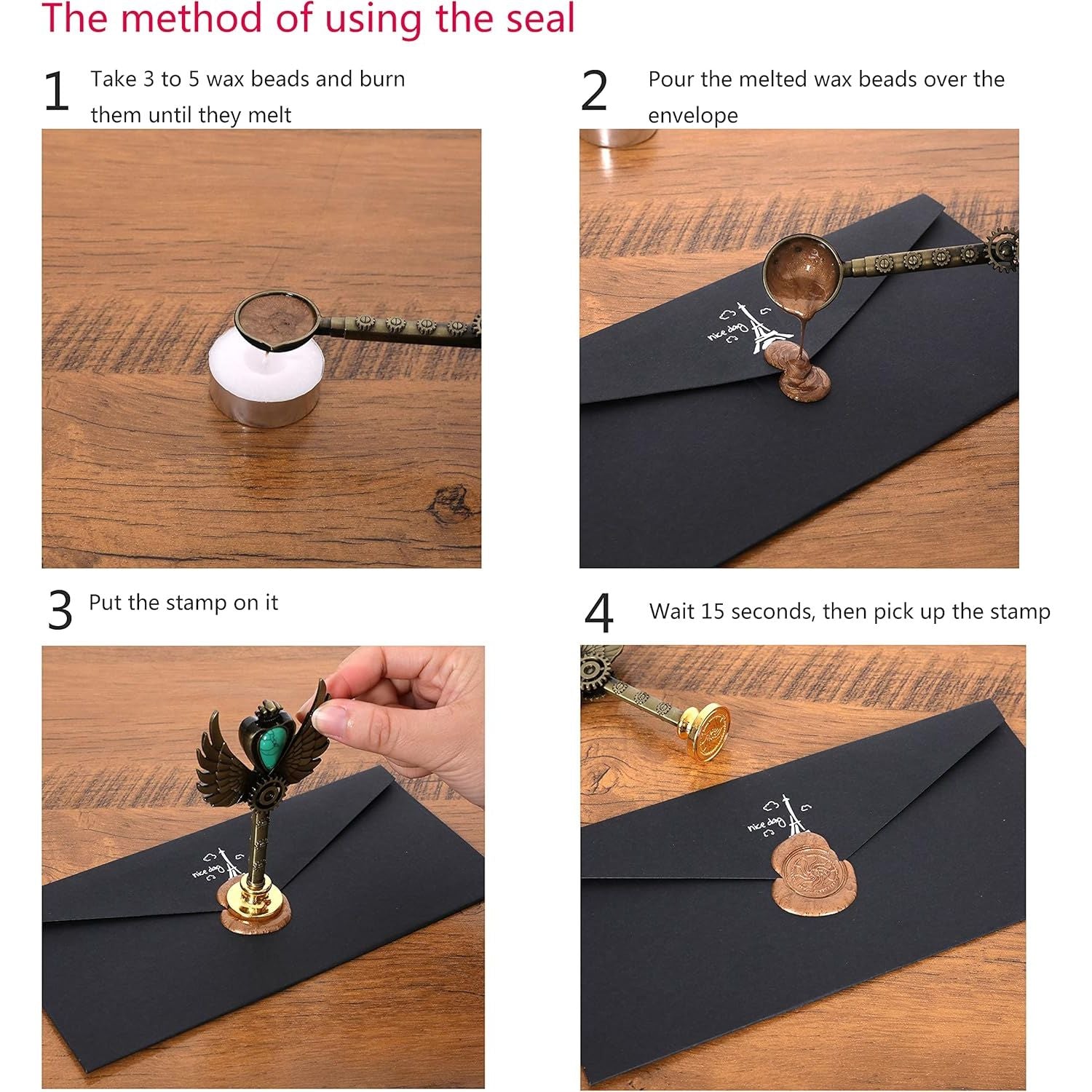 - 【Exquisite accessories】The wax seal is made of high quality brass with a jeweled top, perfect for decorating envelopes and gift boxes.The spoon and nib base are also inlaid with gems.Designed in the style of mechanical gears and wings, they are not only a set of writing tools, but also a work of art.
