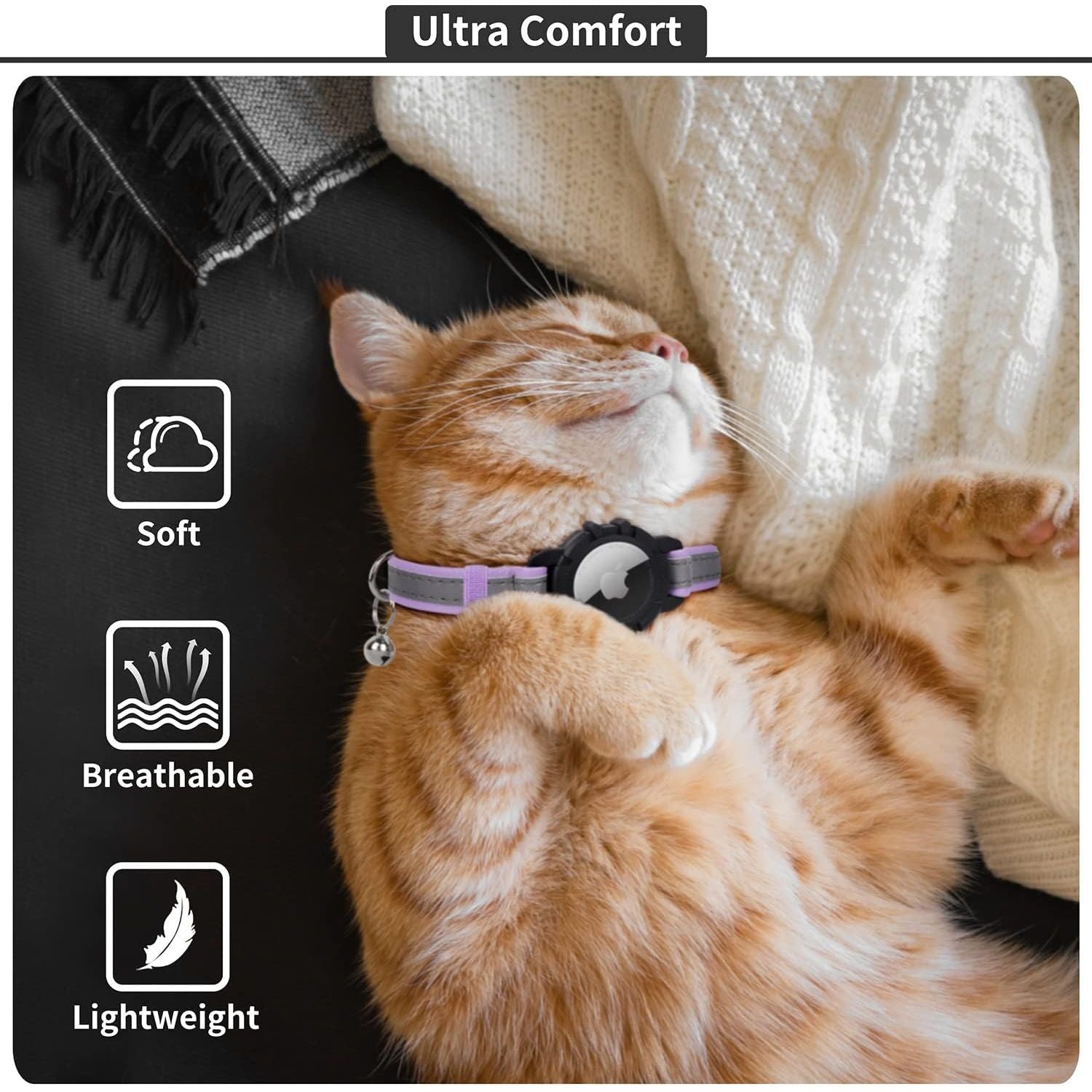 - [MAXIMUM SECURITY] This Cat AirTag collar adds stretchy strap, make sure that your cat can quickly break free when a foreign object is caught in the neck. In addition, AirTag collar has strips reflective, you can easily find your cat at night.