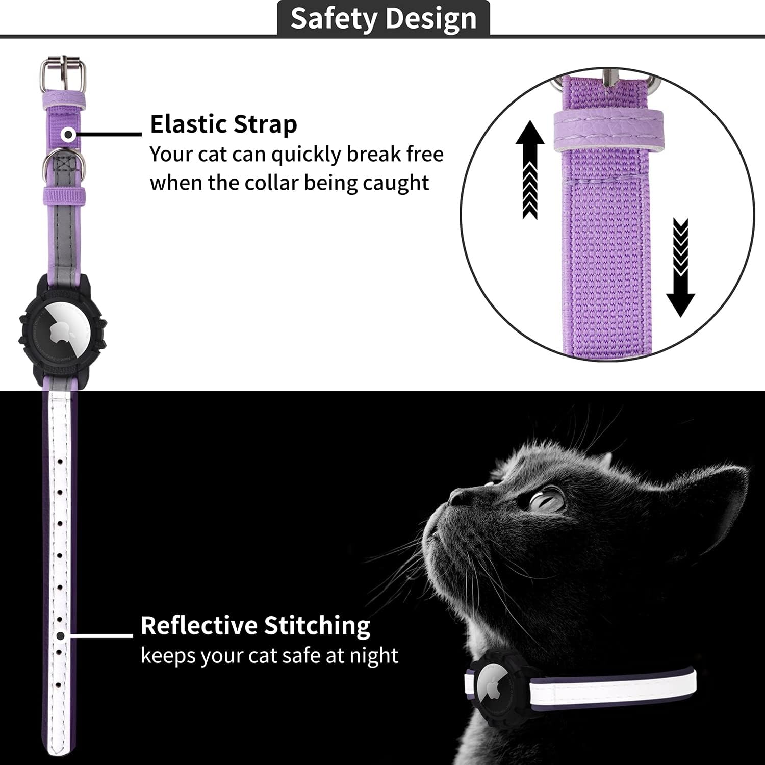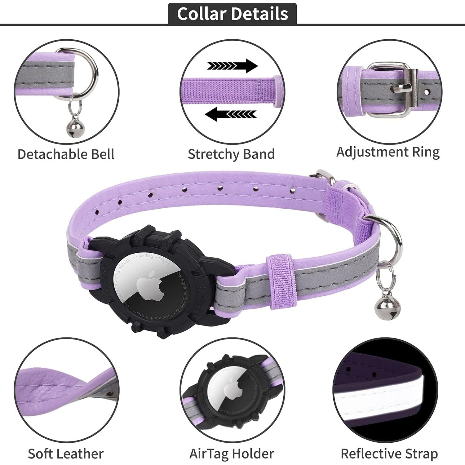 - Reflective AirTag Cat Collar, FEEYAR Integrated Air Tag Cat Collar for Apple, Leather GPS Cat Collar with AirTag Holder and Bell [Purple], Tracker Cat Collars for Girl Boy Cats, Kittens and Puppies