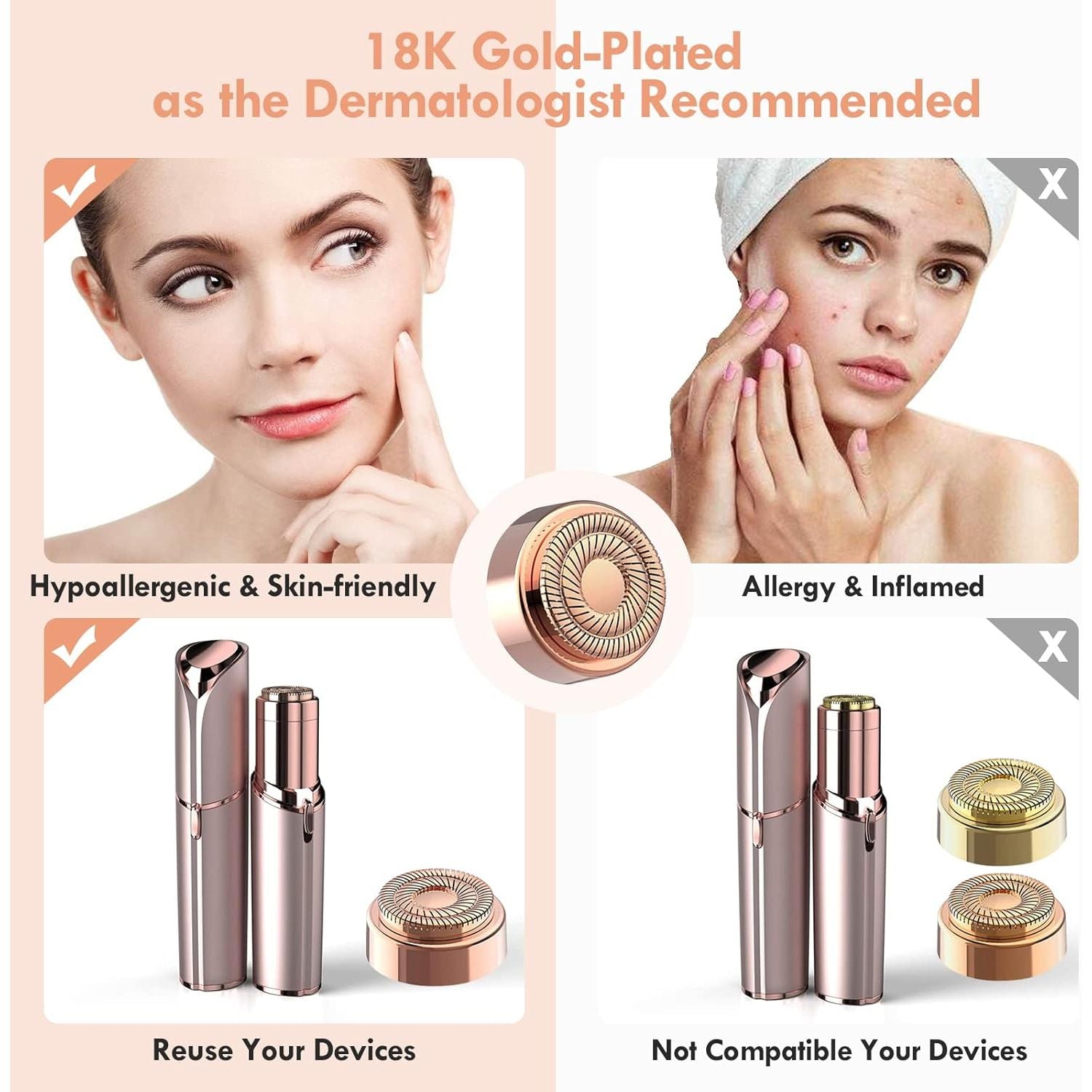 - 【The best companion for women hair removal】 Gen 2 replacement heads keep the same 18K gold-plated rose gold workmanship to provide smooth finishing and gentle touch. It fits with Generation 2 electric or battery hair remover. Outstanding performance in erasing unwanted hair on lip, chin, cheeks and sideburns.Its anti-allergic properties suitable for all skins, allows you to remove your facial hair smoother and feel comfortable