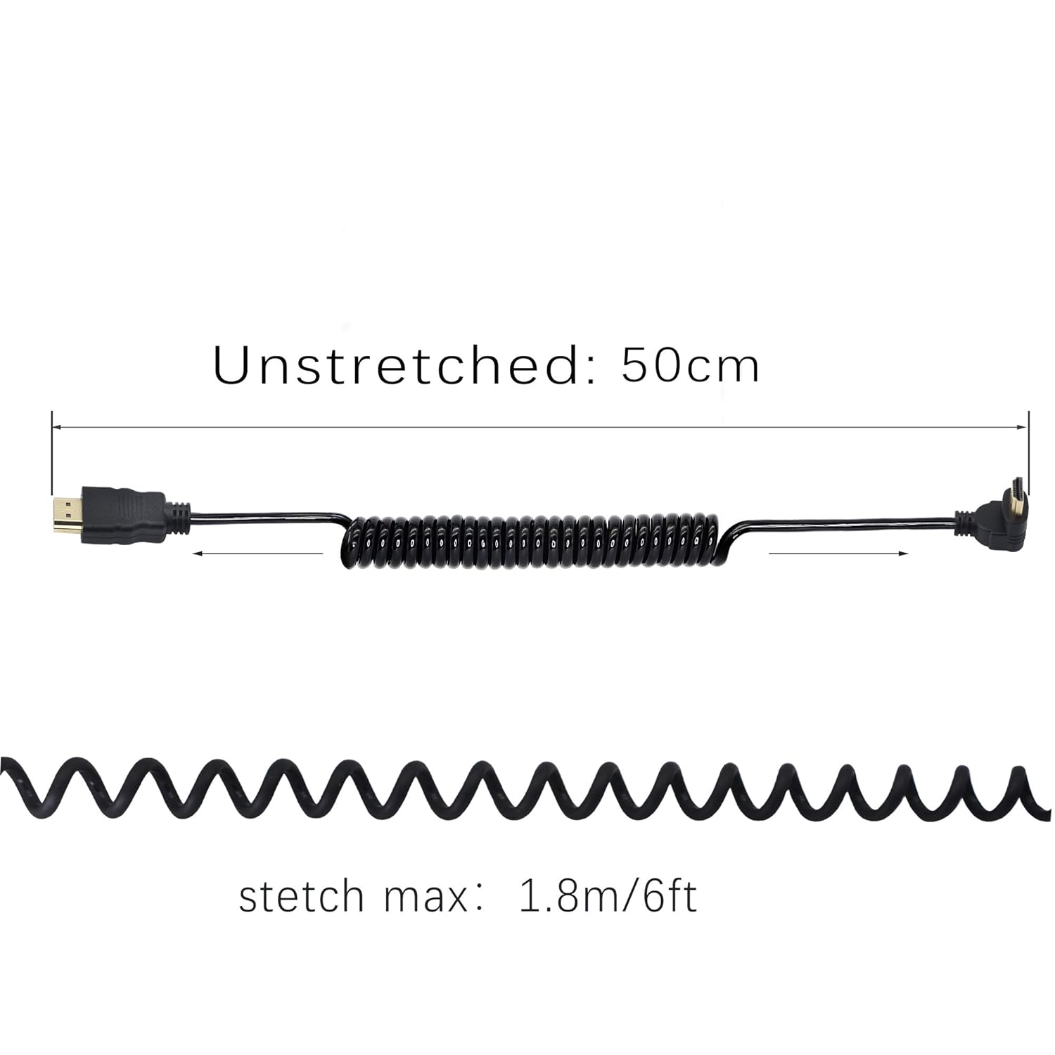 - Right AngleHDMI Coiled Cable,90° Down Angle HDMI Male to HDMI Male Spring Spiral Cable Support 3D 1080P YOUCHENG for Camera, Monitor
