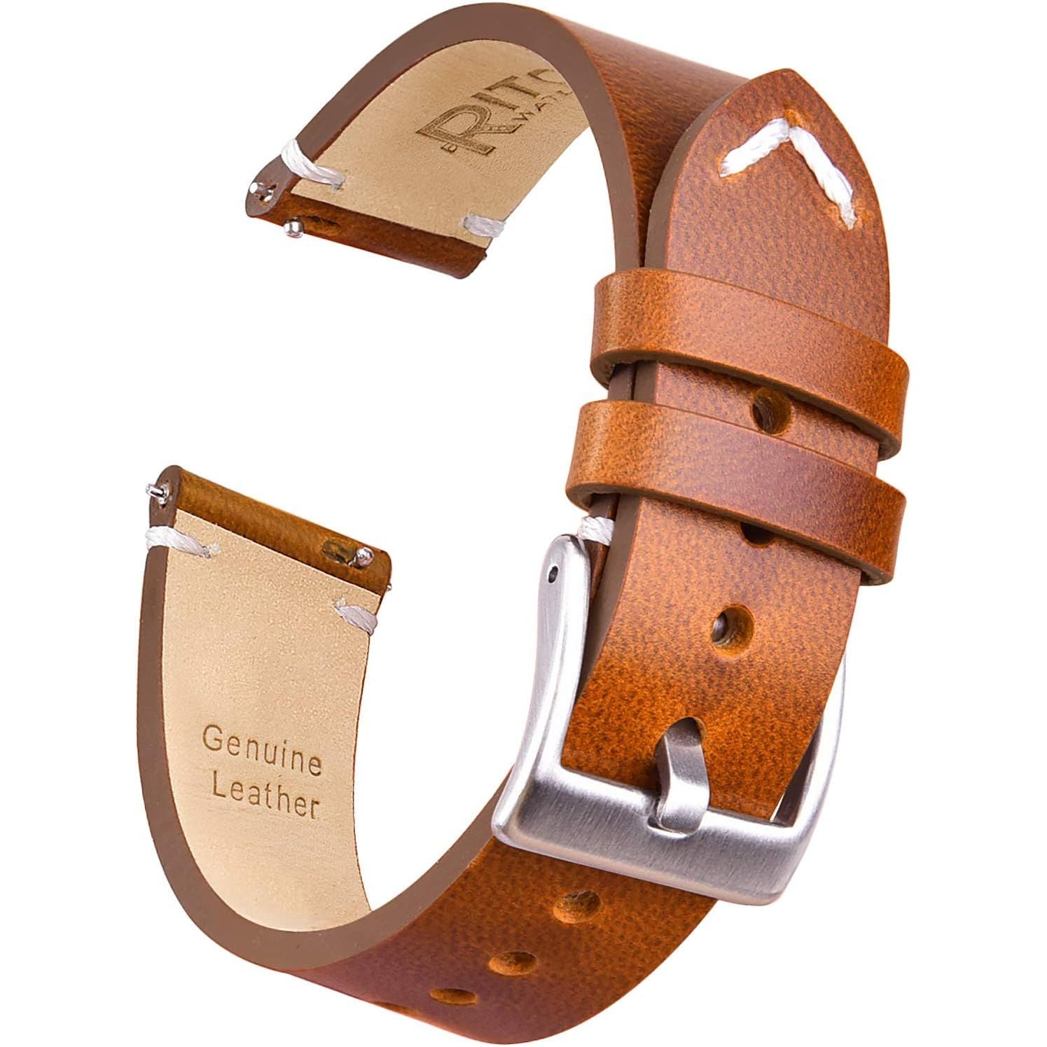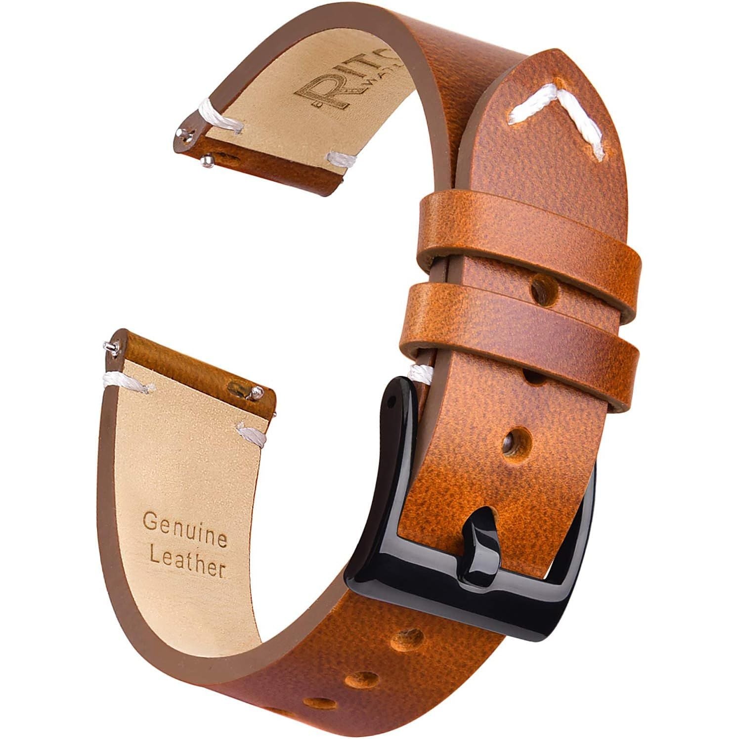 Ritche Christmas Gift Quick Release Leather Watch Band 18mm 20mm 22mm Genuine Watch Strap for Men and Women, White Elephant Gifts, Stocking Stuffers For Men
