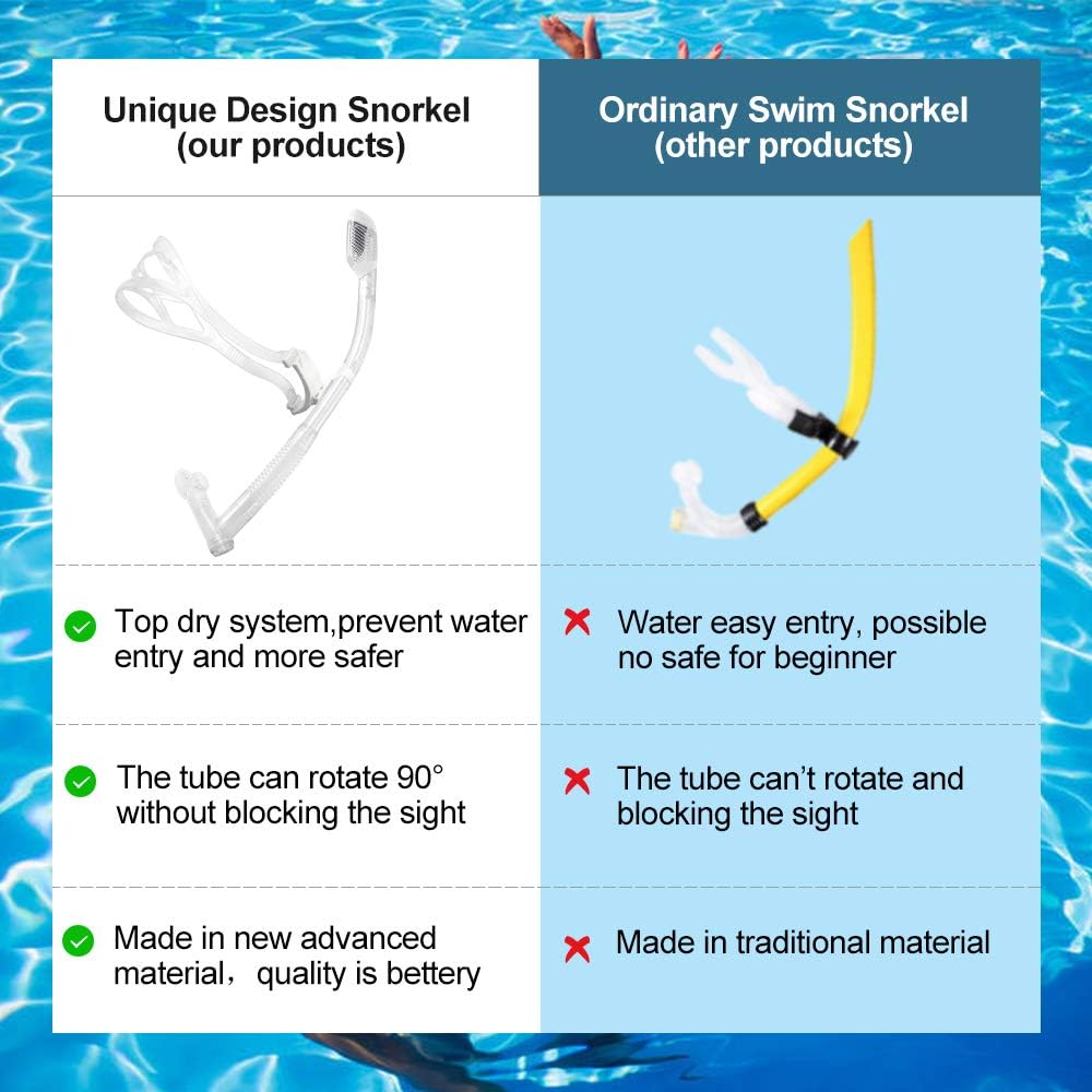 - Rotate Function Swim Snorkel for Training Swimming Front Snorkel Lap Swimming Swimmer Training Diving Snorkeling Comfortable Mouthpiece for Pool Open Water