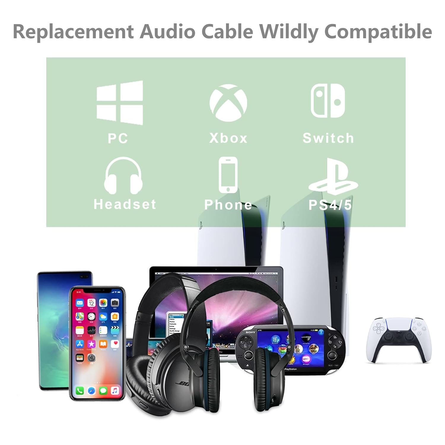 - 【Perfect Compatibility】The replacement bose audio cable perfectly for Bose 700, QC25, QC35, QC35 II, QC45, OE2, OE2i, SoundLink, and SoundLink II headphones. A great replacement for lost or damaged original audio cables.