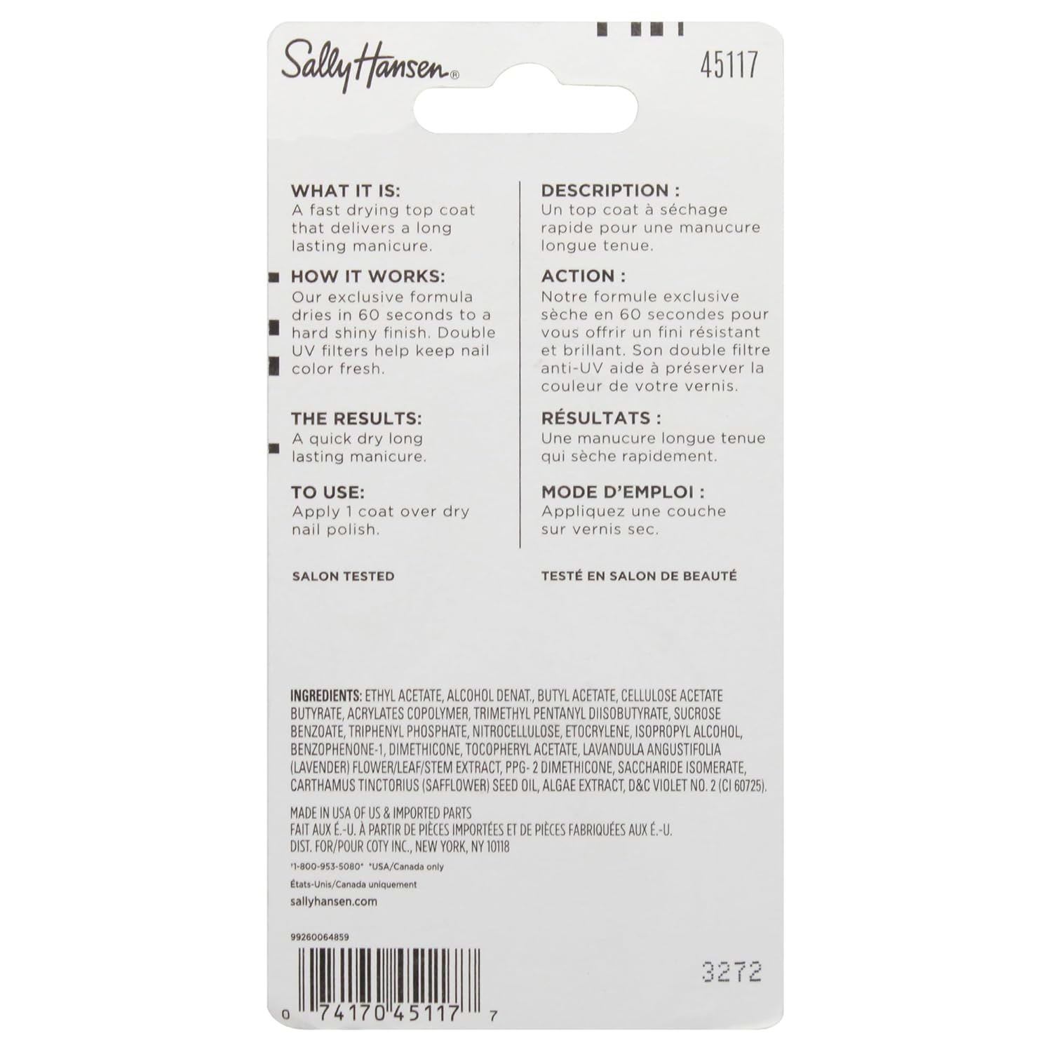 - Sally Hansen Insta-Dri®, Clear Top Coat, Quick Dry, Long Lasting, Streak-Free Shine, Clear Nail Polish