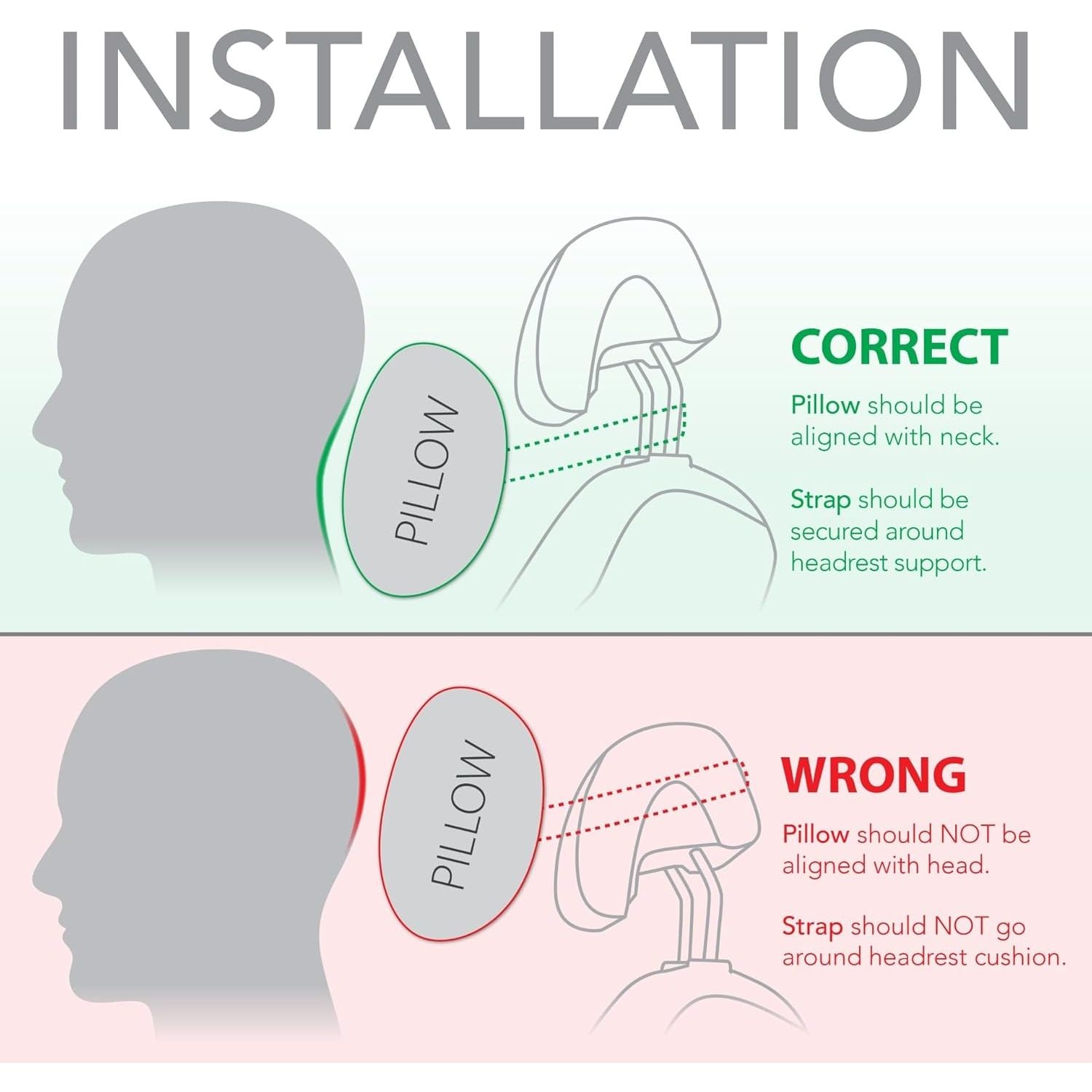 - ADJUSTABLE STRAP – Securely attaches to any car headrest pillow, keeping the neck pillow for travel in place even on bumpy roads. Easily removable for transfer between vehicles.