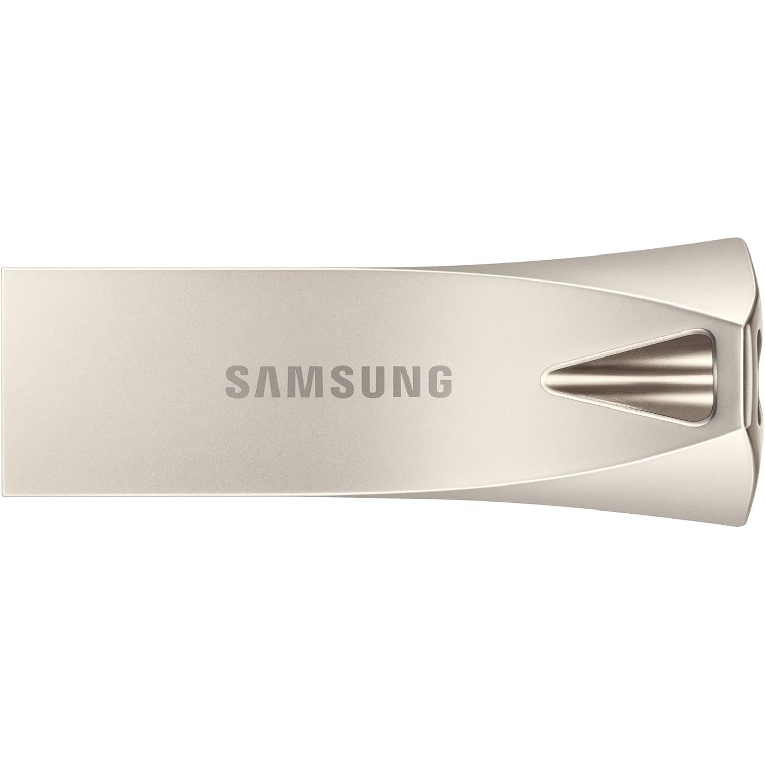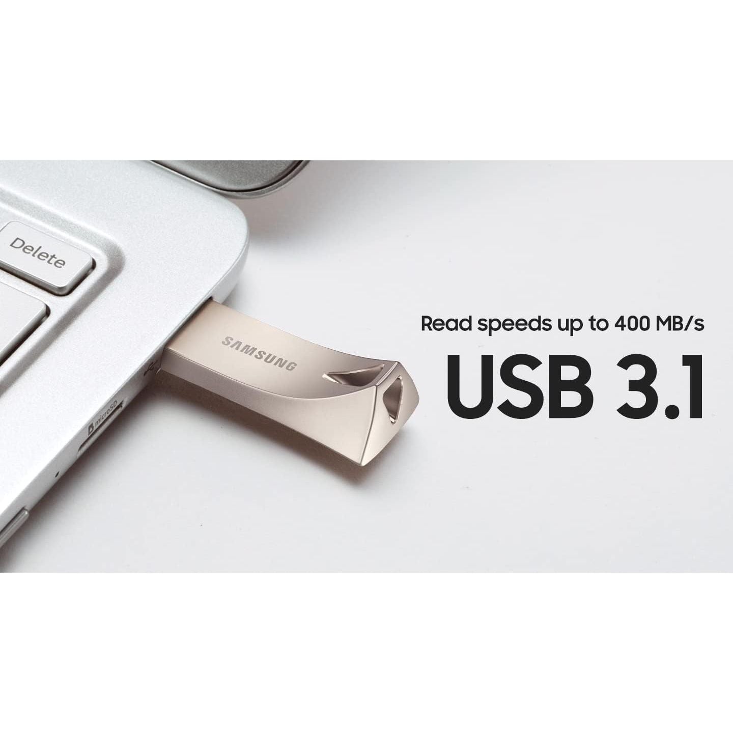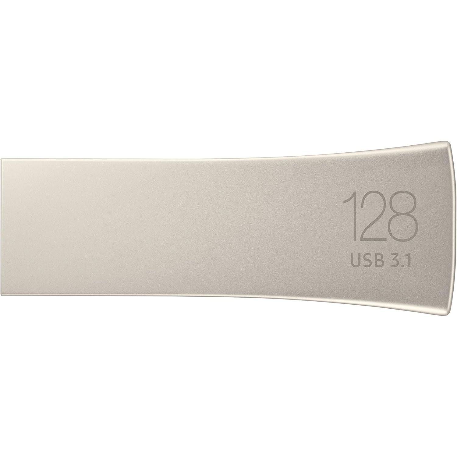 - SAMSUNG BAR Plus 3.1 USB Flash Drive, 128GB, 400MB/s, Rugged Metal Casing, Storage Expansion for Photos, Videos, Music, Files, MUF-128BE3/AM, Champagne Silver