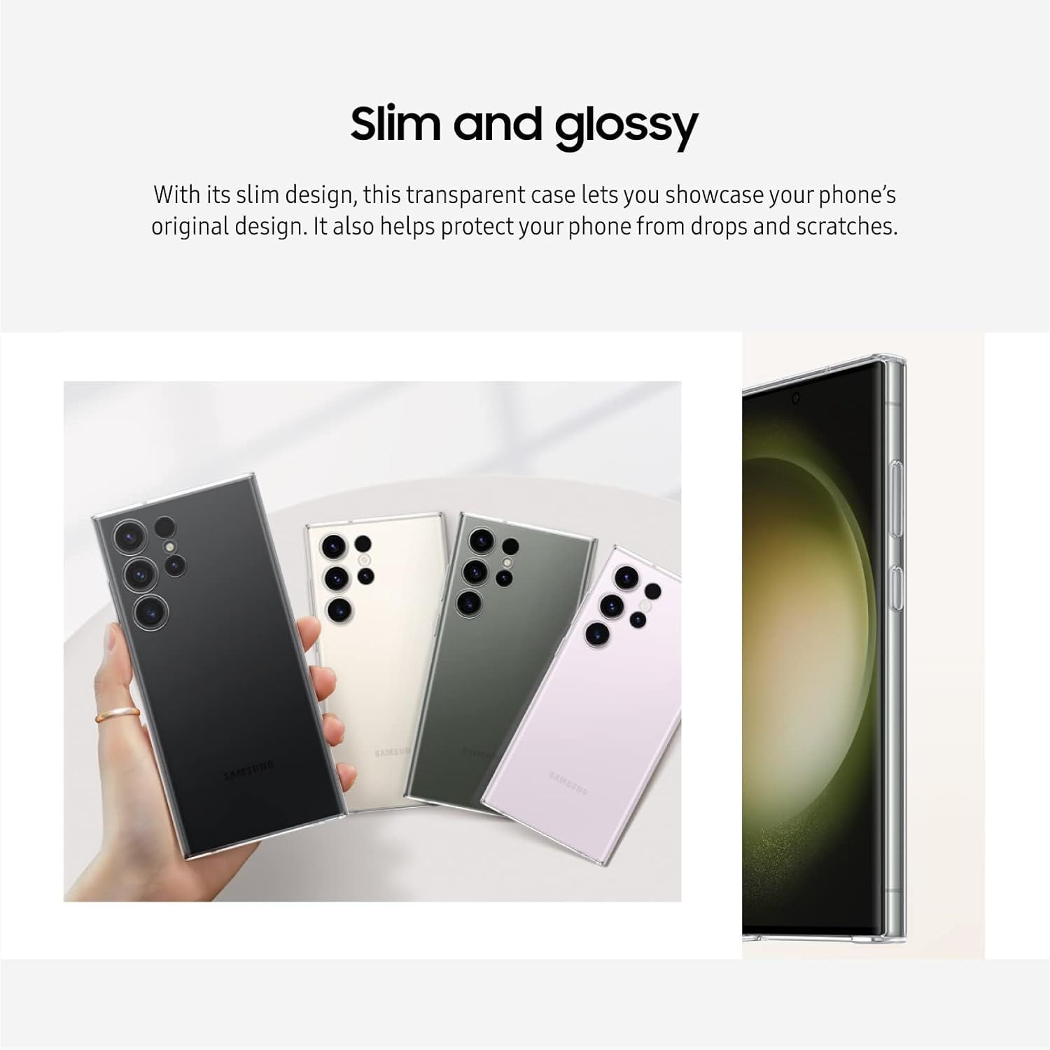 - SAMSUNG Galaxy S23 Ultra Clear Slim Phone Case, Protective Cover w/Glossy, Thin Design, Protects from Drops and Scratches, Premium, Durable Material, US Version, EF-QS918CTEGUS, Transparent