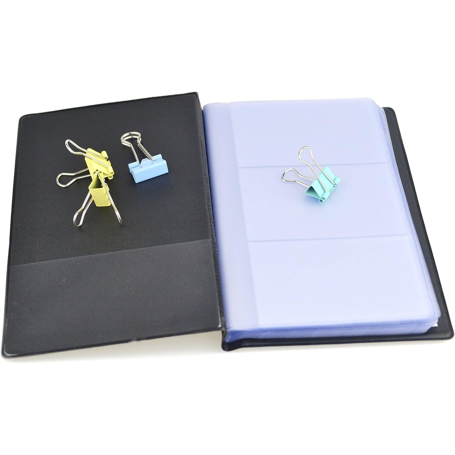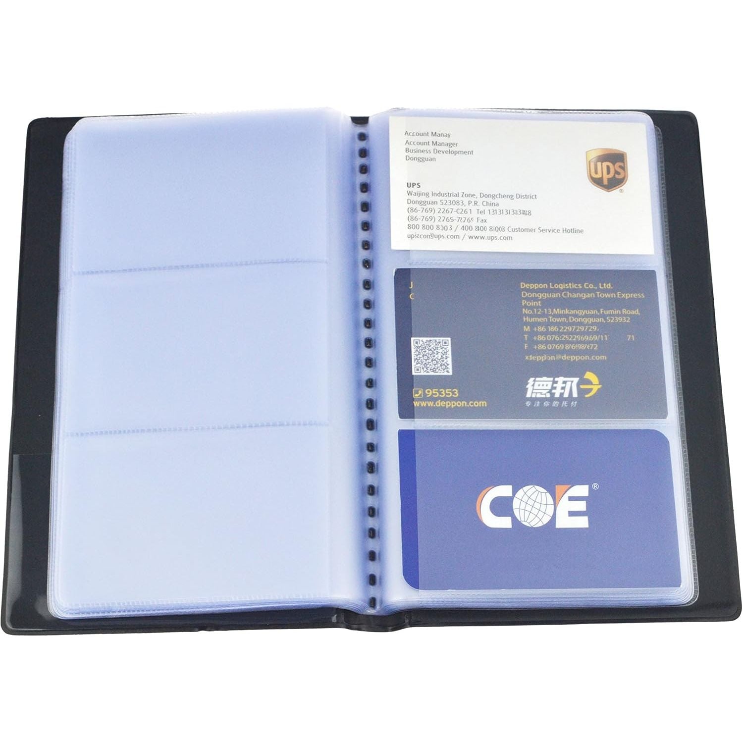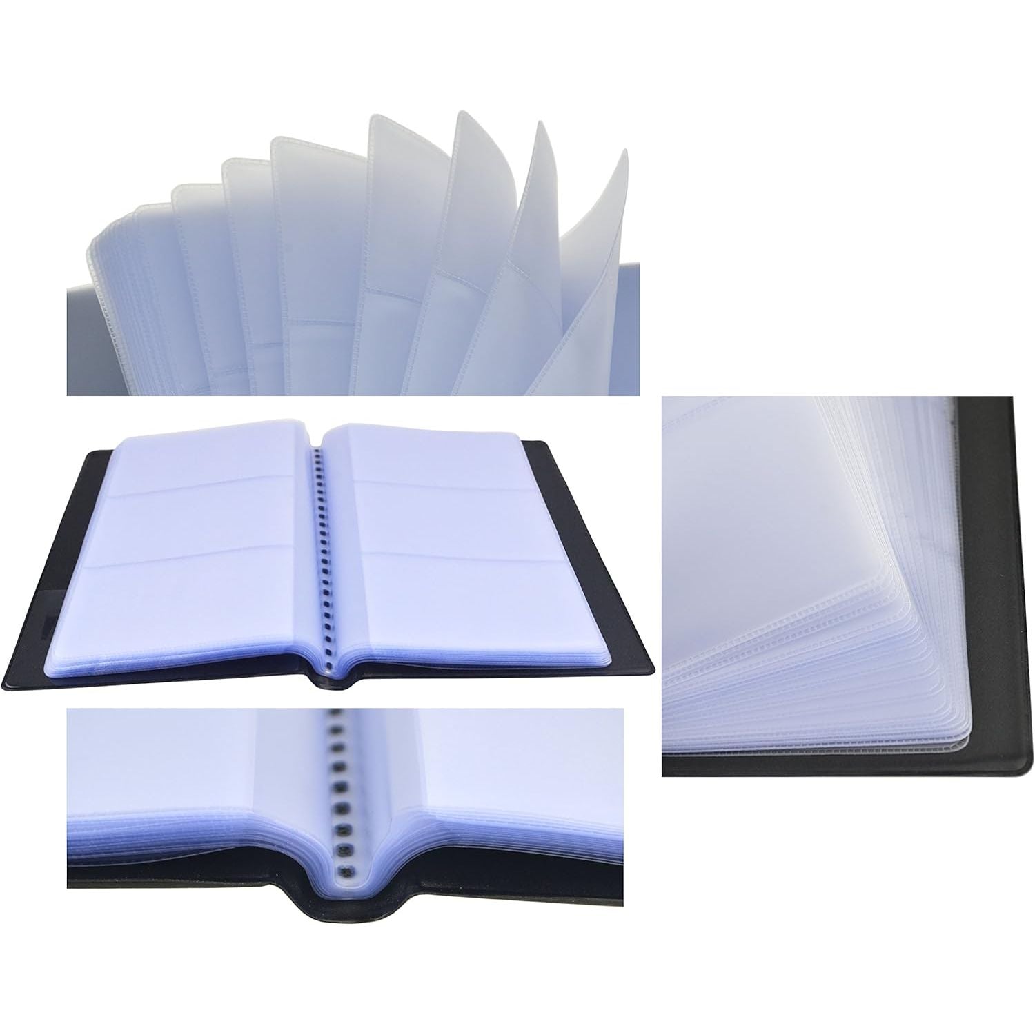 - LARGE CAPACITY - This name card holder book can hold up to 240 business cards. There are 40 pages with 3 individual slots on each page which allow two cards placed back-to-back in each slot since pages are double-sided visible. Maximum card size suitable: 3.6" x 2.1".
