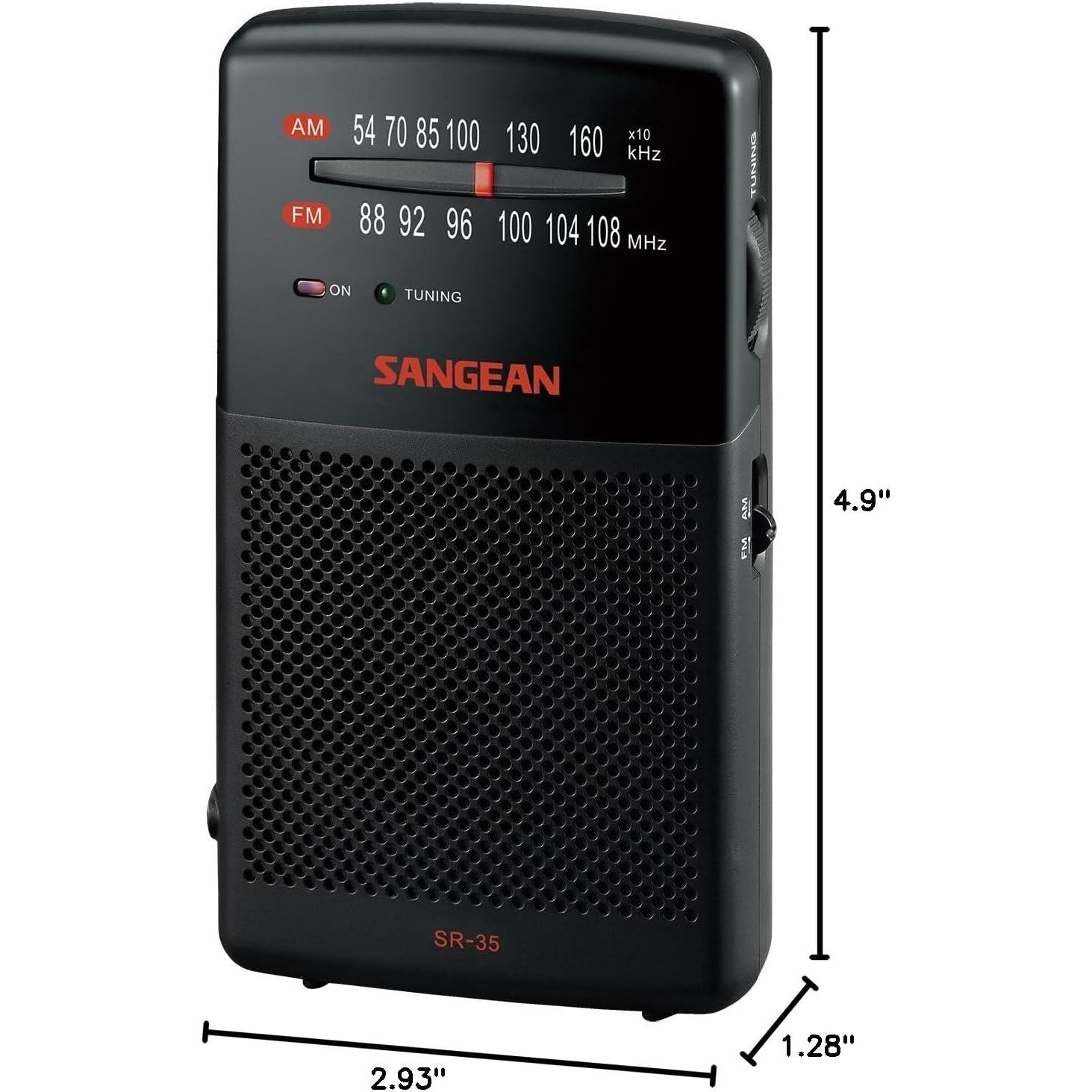 - Sangean SR-35 AM/FM Analog Pocket Radio with Built-in Speaker, Black