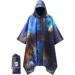 - [3 IN 1 FUNCTIONAL] Multi-functional poncho can be used as floor mat, cape, a simple shelter and canopy. The grommets in each corner can be used as an emergency shelter or cover the goods such as backpacks or other camping gear, and hook and loop fasteners on both sides of the cape can be used as a sleeping bag cover.