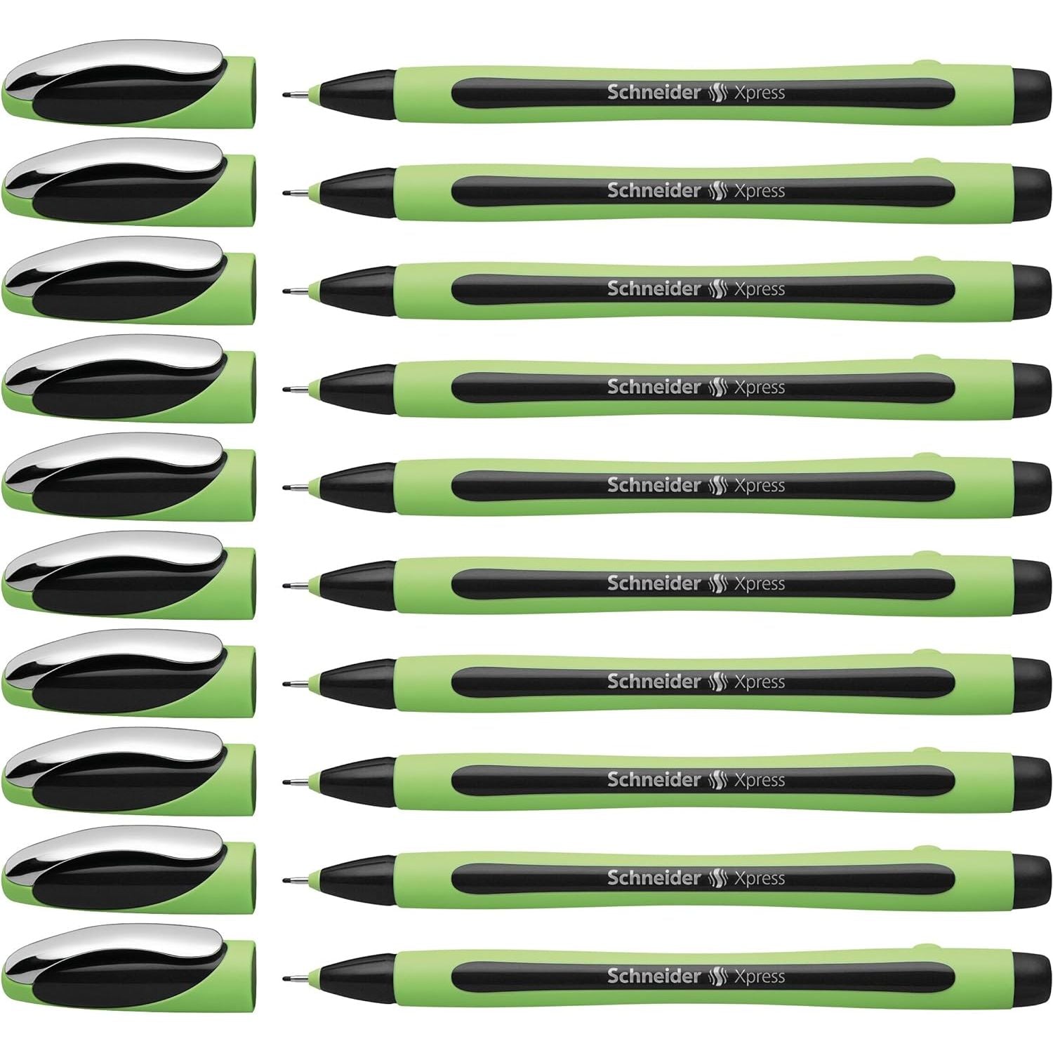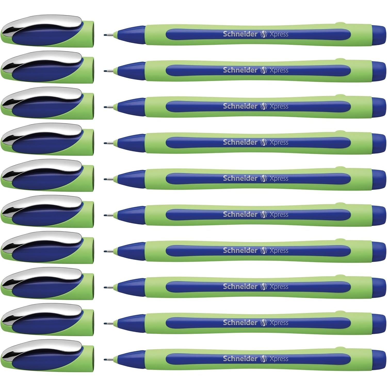 - Schneider Xpress Premium Fineliner, 0.8 mm Porous Point, Light Green Barrel, Blue Ink, Box of 10 Pens (190003)