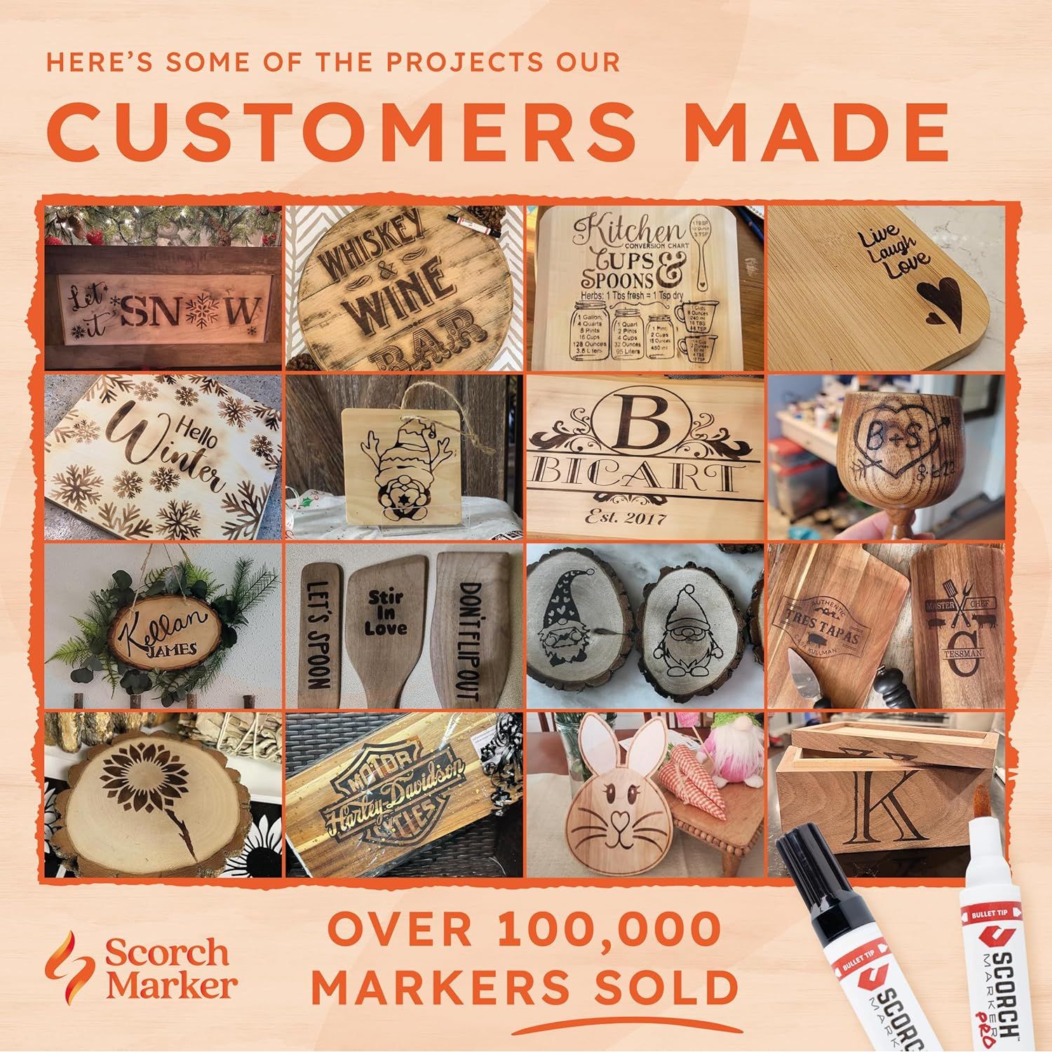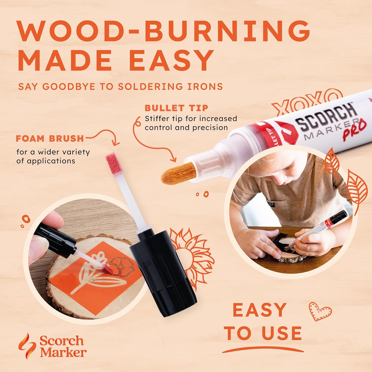 - Scorch Marker - Wood Burning Marker, 2 in 1 Pyrography Kit for Adults, Woodburning Tool for Crafts, Stencils & Letters, DIY Pen Kit with Brush & Bullet Tips, Engraving Pen for Wood Burning Projects