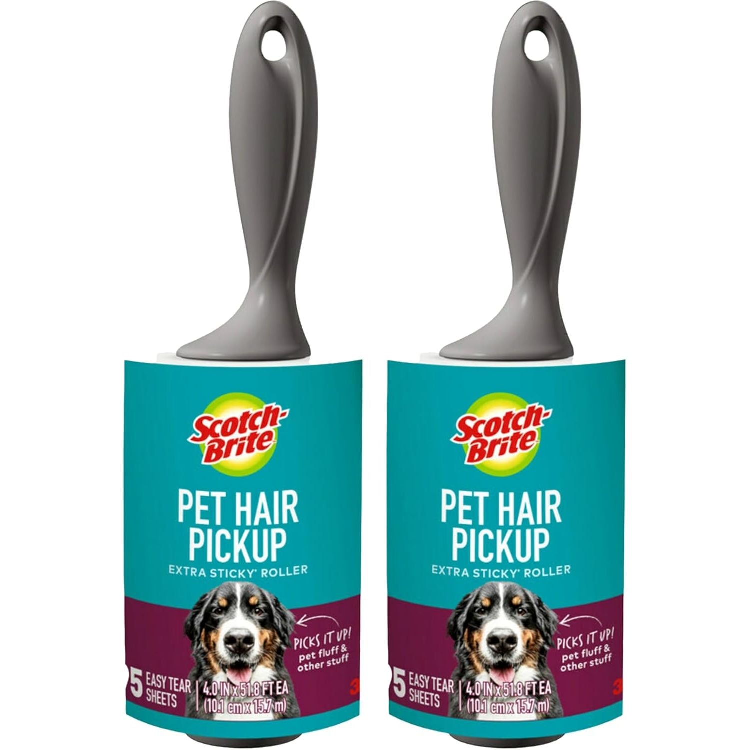 - Scotch-Brite Pet Hair Pickup Extra Sticky Lint Roller, Designed for Removing Fur + Fluff on Couches, Clothes, Dog and Cat Beds, & More, 1 Pack, 95 Easy-Tear Adhesive Sheets Total